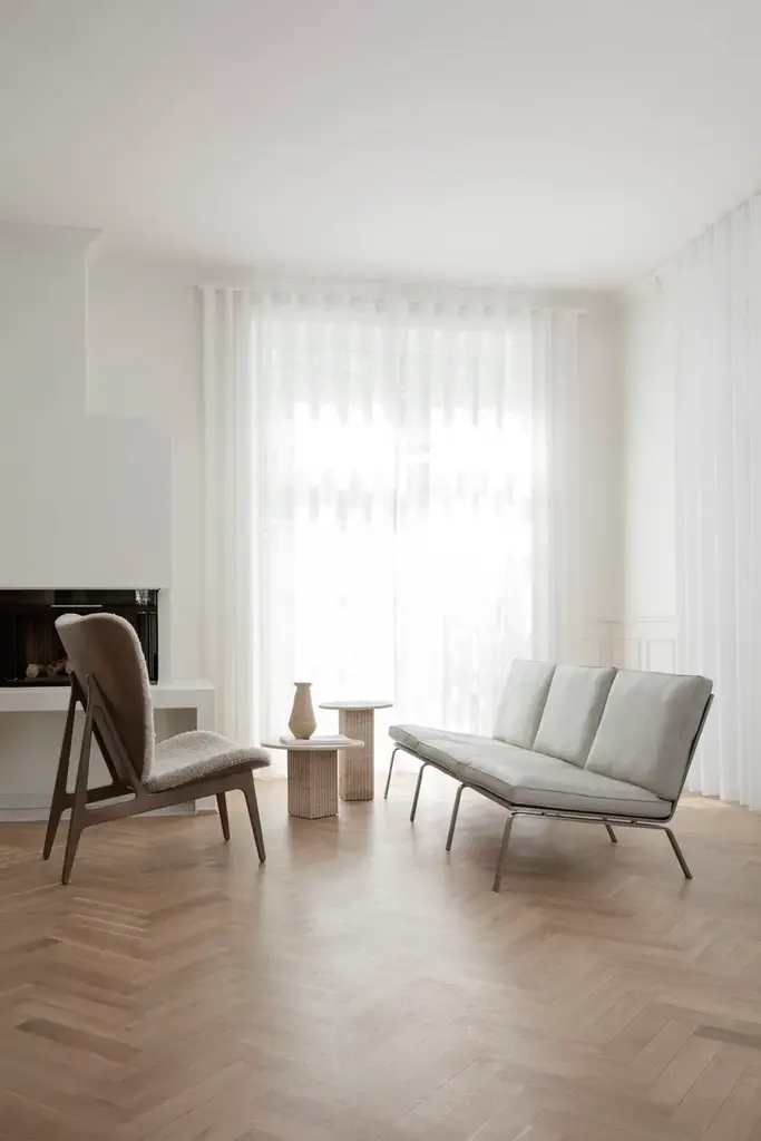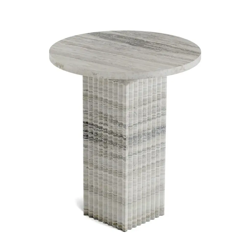 Soho is a coffee table made from travertine with a natural surface of small holes and imperfections. Made from travertine plates, the table is still lightweight and easy to move around.Travertine is a natural stone material, which means that every slab varies in terms of vein pattern and color. Travertine has an open surface, which means that if water is left on the surface for a period, it can leave marks. Therefore, we recommend using coasters for items that can leave marks and stains.Please do not use cleaning products containing acid on the surface. It is recommended to use cleaning products intended for natural stone. For a more durable surface, an impregnating surface treatment can be applied using stone oil or stone treatment products.Extended exposure to the outdoors can lead to color changes and staining. During the winter season, we advise covering the tables with a waterproof cover or storing them indoors.Rich in architectural references, the SoHo collection reminisces architectural building facades to create a vertical and slim table design. The fluted surface of natural stone adds tactility, while shadows play upon the sense of depth and character of the stone’s surface throughout the day.