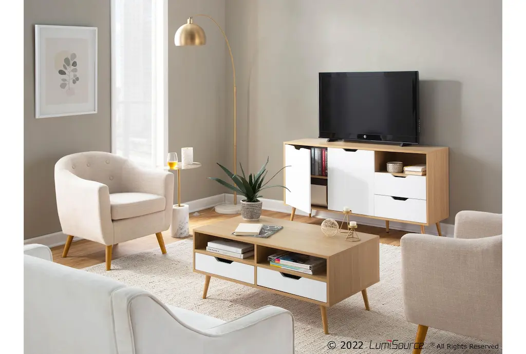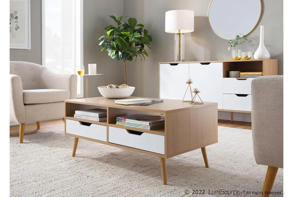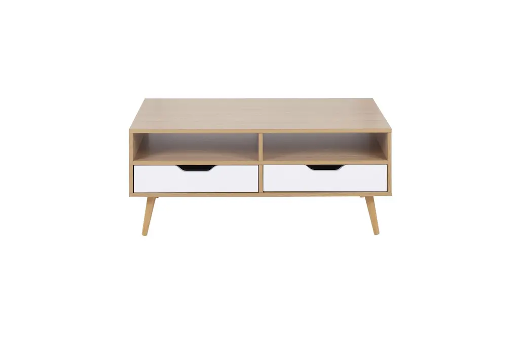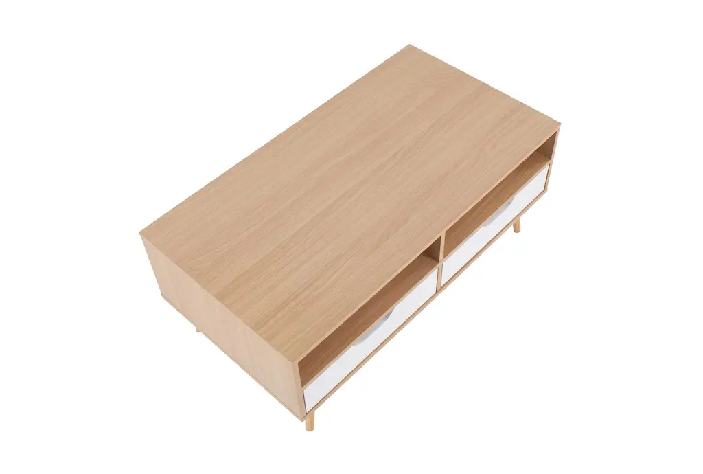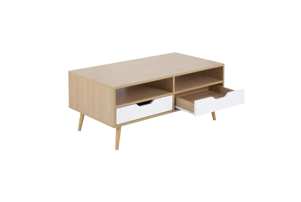 The Soho Natural Wood Rectangle Coffee Table is a stylish and functional addition to any living room. Its modern design features a combination of natural wood and white wood, creating a soft and neutral aesthetic. This coffee table offers ample storage with its drawers and shelves, making it perfect for keeping your space organized.