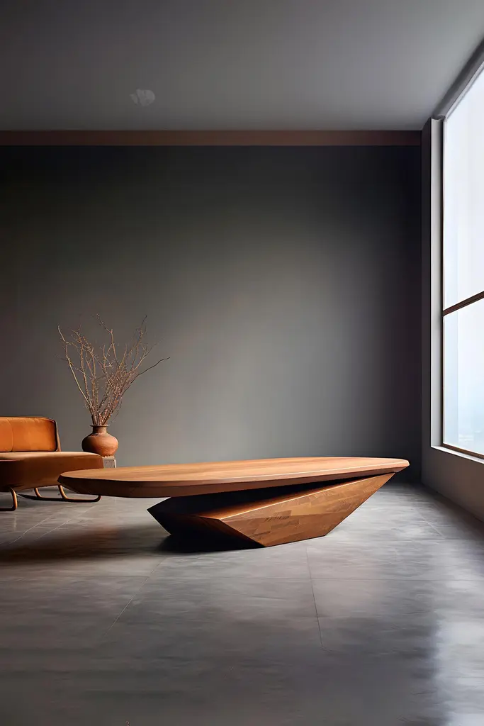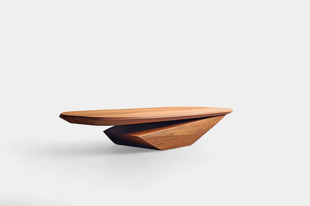 Solace 18: Walnut Oval Coffee Table With Geometric Base, Elegant Design