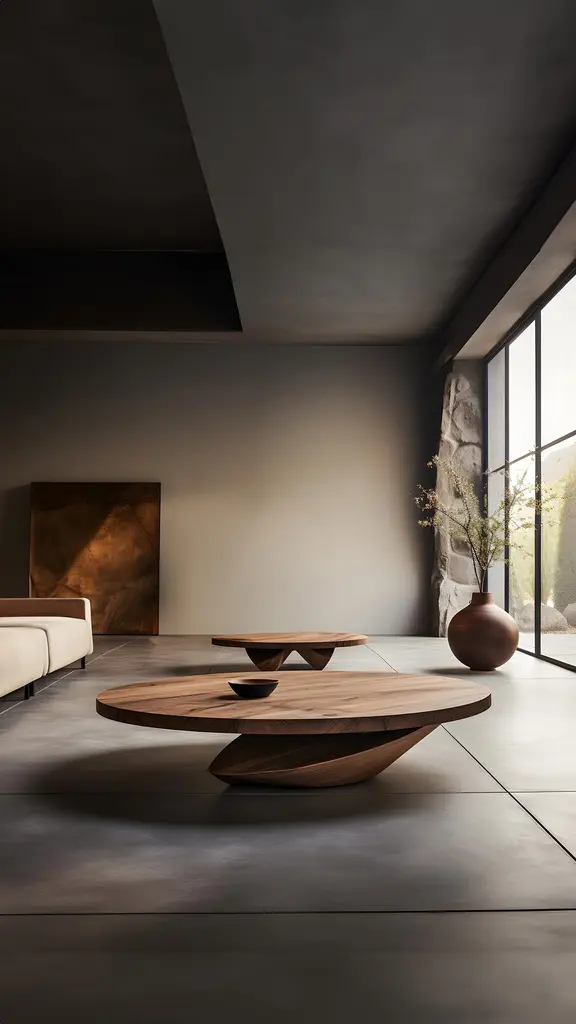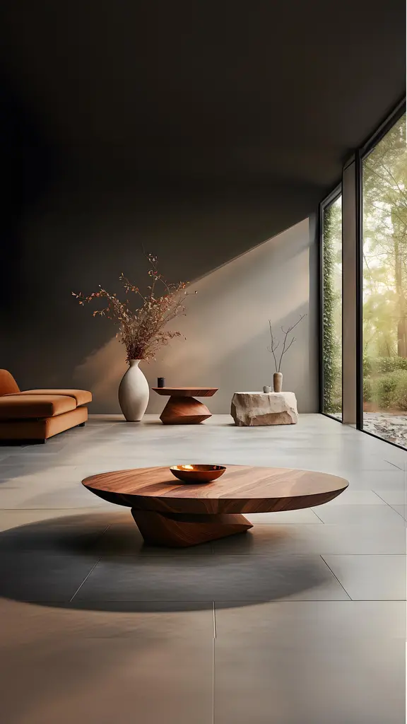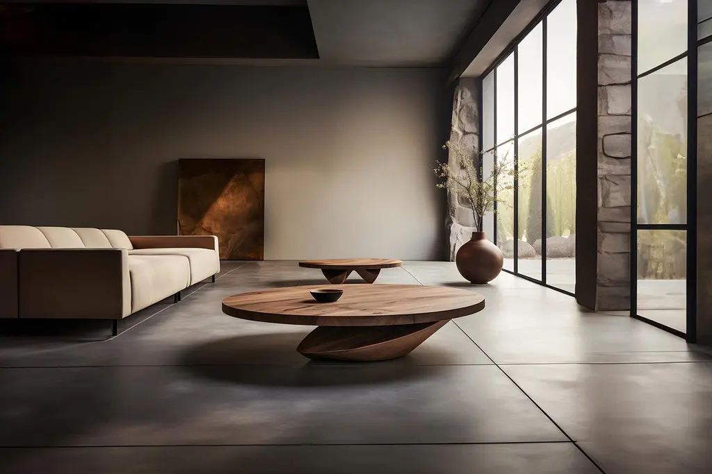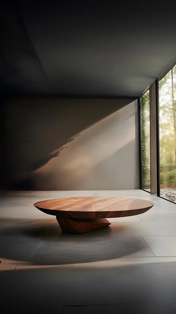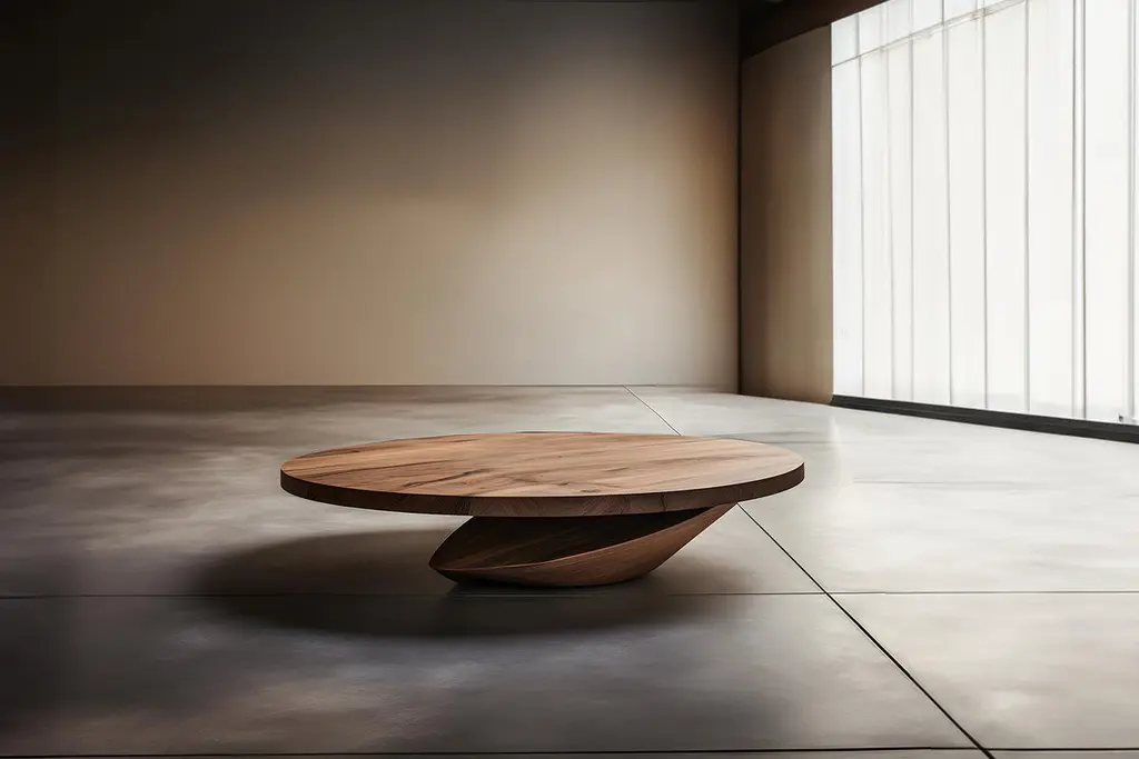 Solace 44: Solid Walnut Round Coffee Table, Blend Of Art & Utility