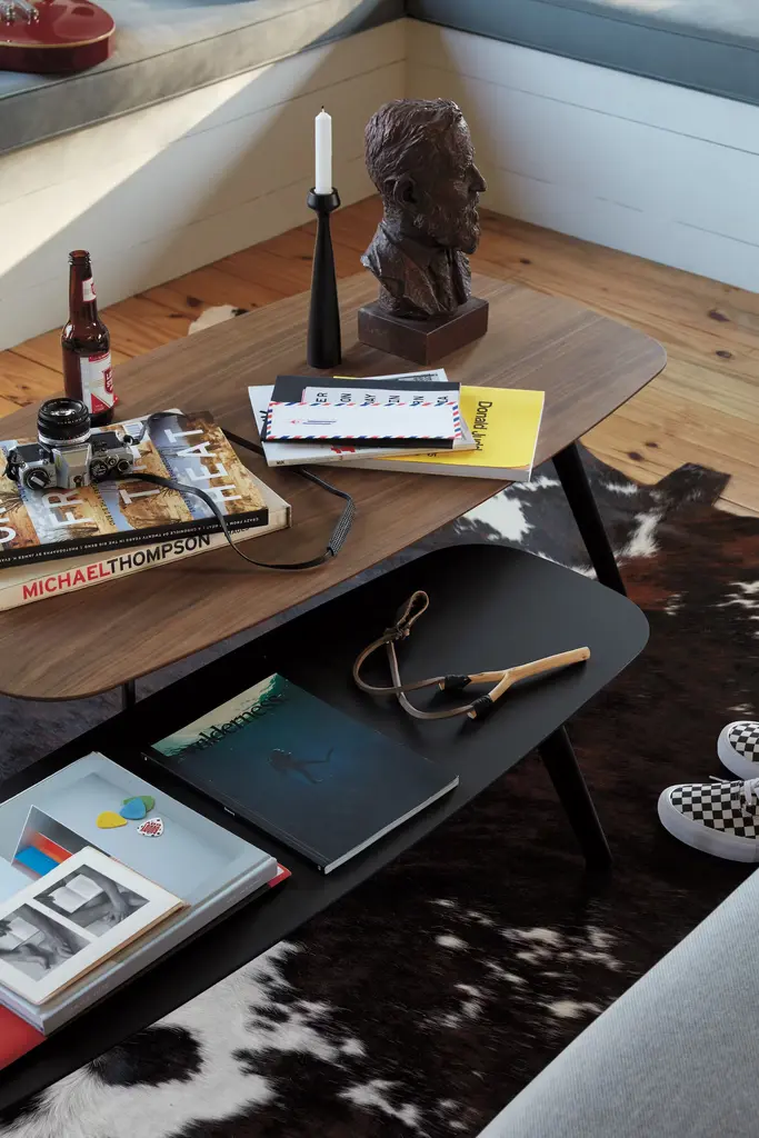 Jon Gasca created a family of sofa tables that suit a variety of sofas and settings. “The goal was to make a classic shape more relevant for how we live today thanks to its new proportions," says Gasca. The Solapa Table (2017), which is named for the Spanish word for lapel or overlap, is available with a top in veneer, laminate or Fenix, a unique nanotech resin with a soft touch and super opaque finish. Fenix is also anti-fingerprint, scratch-resistant, and self-healing. Made in Spain.