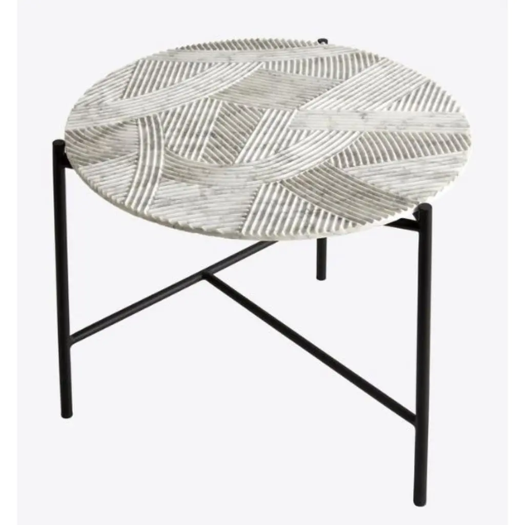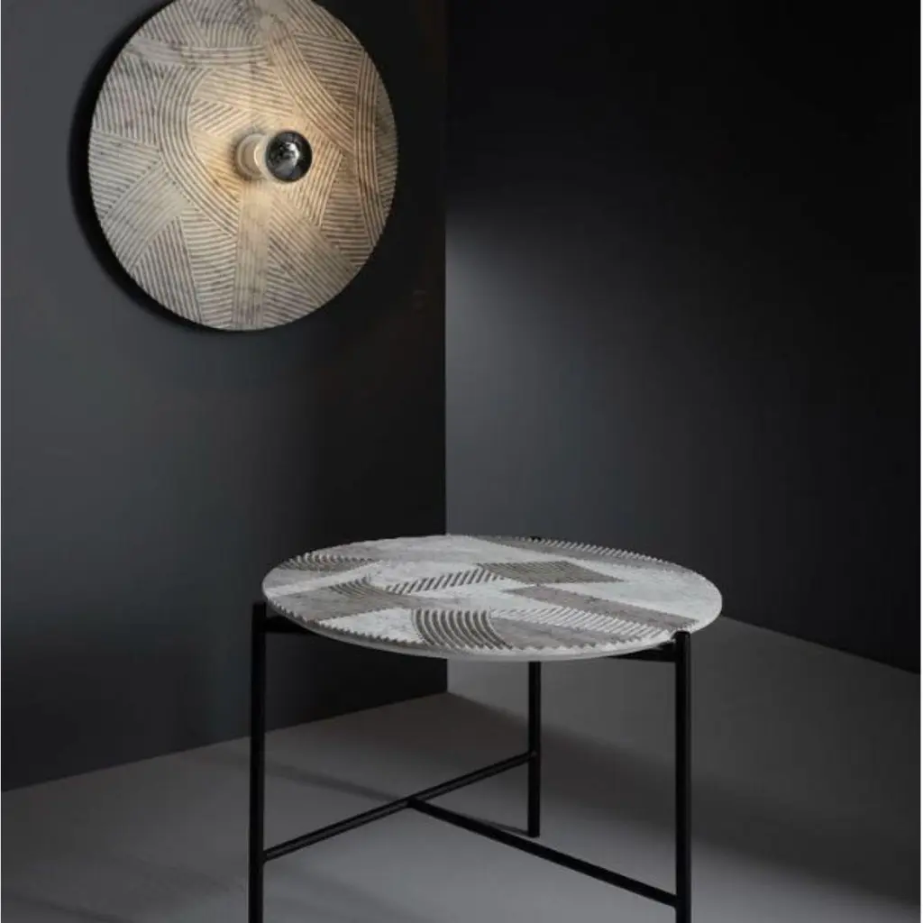 Solco coffee table by Radar.Design: Bastien Taillard.Materials: Metal, Carrara marble.Dimensions: D 60 x W 60 x H 43 cmElegant, timeless, understated. The RADAR collection allows you to take a welcome break from the teeming world of objects and styles, and proposes practical, beautifully designed products made by aesthetes for aesthetes.Francesca Bertini, Milanese born in the Mecca of world design, married to a Neapolitan with whom she lives in France. First tempted by a professional sports career in alpine skiing, she decided to invest in another challenge, her diploma in management of international companies at Università Bocconi in Milan.From marketing for a large editorial group to international and institutional relations for an important think tank European linked to the Italian Ministry of Foreign Affairs, she moved to France and put her experience at the service of the commercial management of a luxury decoration brand. Bastien Taillard was born into a family of interior decorators and designers where creativity was a driving force.After his training at the ENSCI (National School of Industrial Creation, Paris) this tireless traveler settles temporarily in Milan where he meets several of his future mentors, these iconic designers, pioneers and innovators. It is his own path and style that he develops according to his experiences and his encounters.