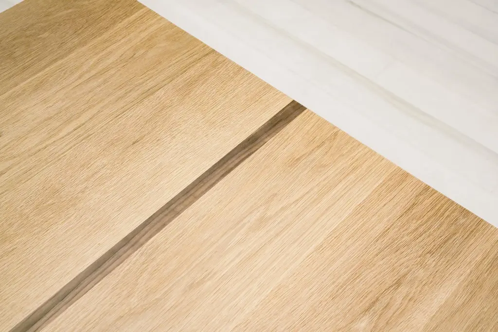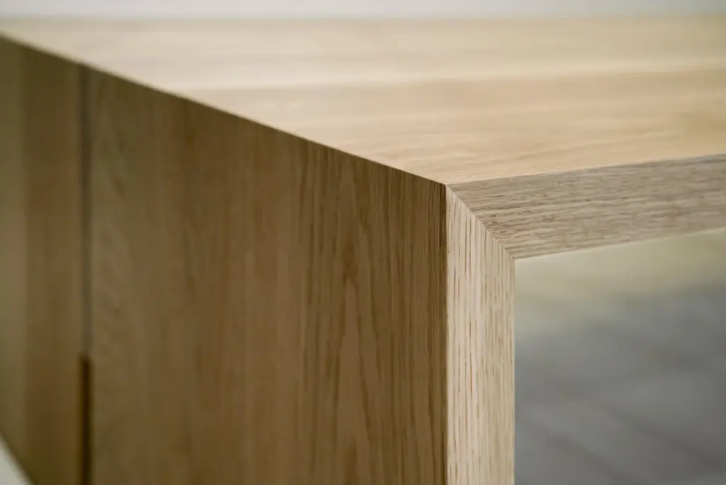 This custom coffee table is hand-made in the United States with all hardwood construction. It features a modern rectangle waterfall design with a solid white oak body and a minimalist walnut inlay detail. The inlay ends adding a unique lightness to the design. The contemporary style can anchor a modern rustic space or a contemporary space with clean lines. The finish brings out the beautiful golden tones of white oak and is not orange-y or pink. This piece can be ordered in 4 finishes: Oak, Walnut, Ash or Matte blackJameson Collection by Lynnea Jean.Inspired by a 20th century primitive stool, the Jameson collection is the first furniture line from Lynnea Jean Interiors.Known for her laidback California aesthetic merged with classic silhouettes, Lynnea Jean is inspired by pieces lovingly passed down through generations. The custom furniture collection features luxurious clean lines and fine details, resulting a timeless aesthetic. Additionally, we only work with the finest, sustainably sourced materials. Dedicated craftspeople build each piece by hand with meticulous detailing in their downtown Los Angeles workshop.Lynnea Jean offers complete custom capabilities to the trade. To inquire, specify the dimensions, select the finish and consider adapting the design details. From where you create to where you dine to where you sleep, the Jameson collection is here to become a part of your everyday moments and your most cherished memories.