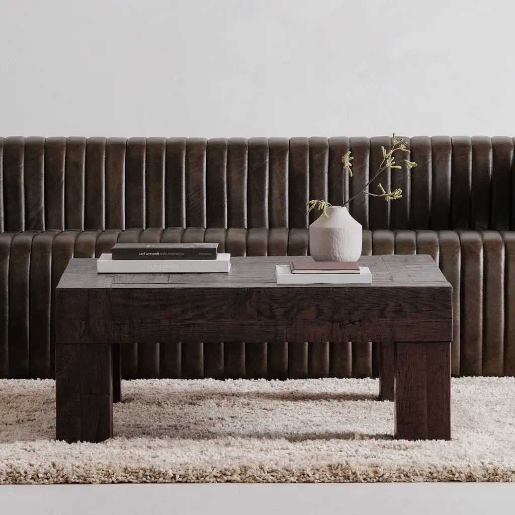 Reclaimed oak for rustic farmhouse style. Beautiful finish highlights the natural wood grain. Spacious top hold snacks, drinks and games. Contract Grade for unmatched durability.
