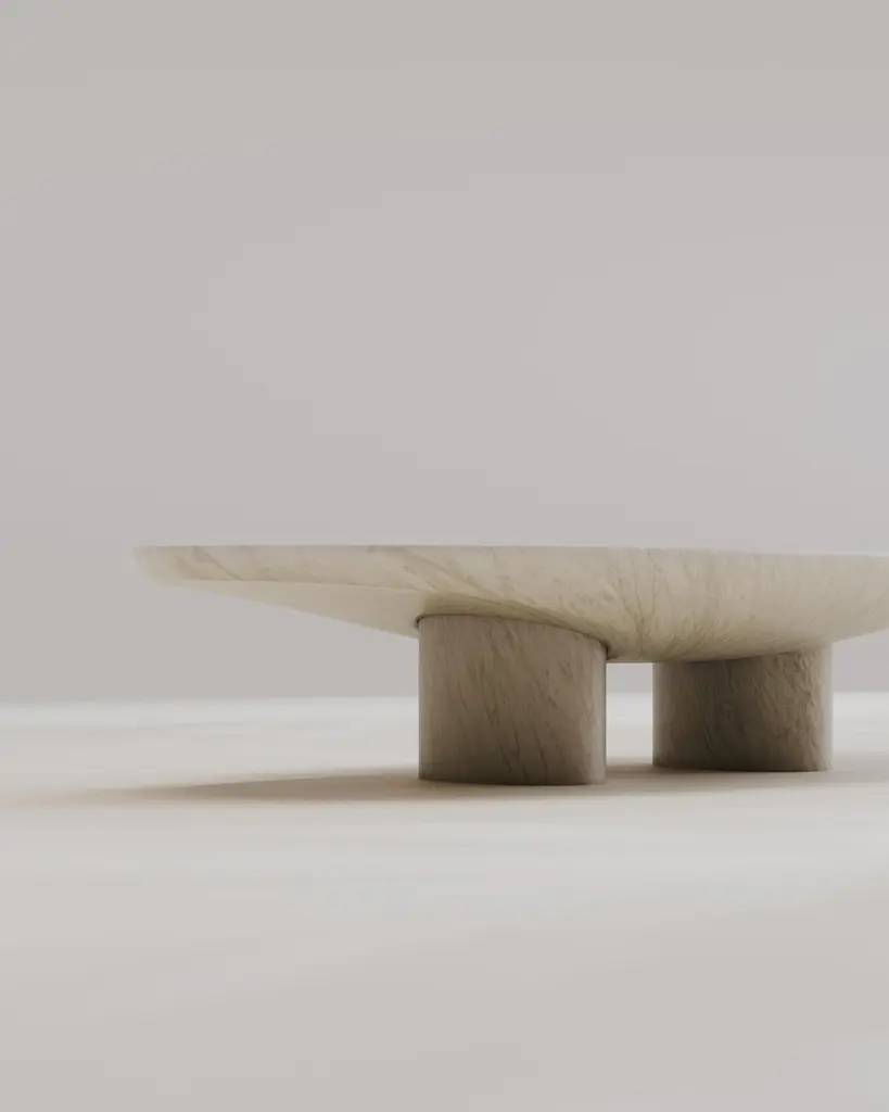 Introducing the "Abraccio" Collection or translated "embrace" Collection unites the enduring beauty of solid carved marble with a language of form that pays homage to primitive structures. Two primal shaped columns support a commanding horizontal solid slab. It becomes a conversation between classical and contemporary, nature and craftsmanship, geometric precision and organic shapes. Yet, it's the ellipsoid embrace that truly defines the collection's character. These graceful curves, meticulously carved into the stone, encircle the columns like an enigmatic story waiting to be deciphered. This ellipsoidal motif not only adds a layer of visual allure but also imparts a sense of unity and balance, bridging the gap between the geometric precision of the columns and the softer lines of the surrounding space.Hand crafted solid marble by Serafini. Each stone will be selected together with the client to create the desired effect. Custom stones/marbles are possible upon request. We can also do different sizes.