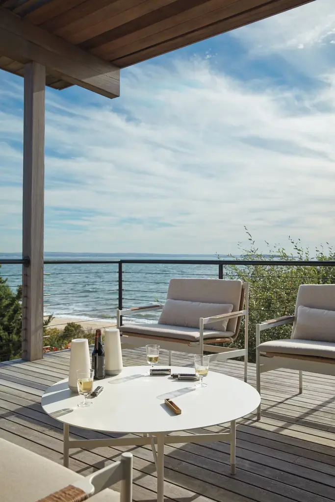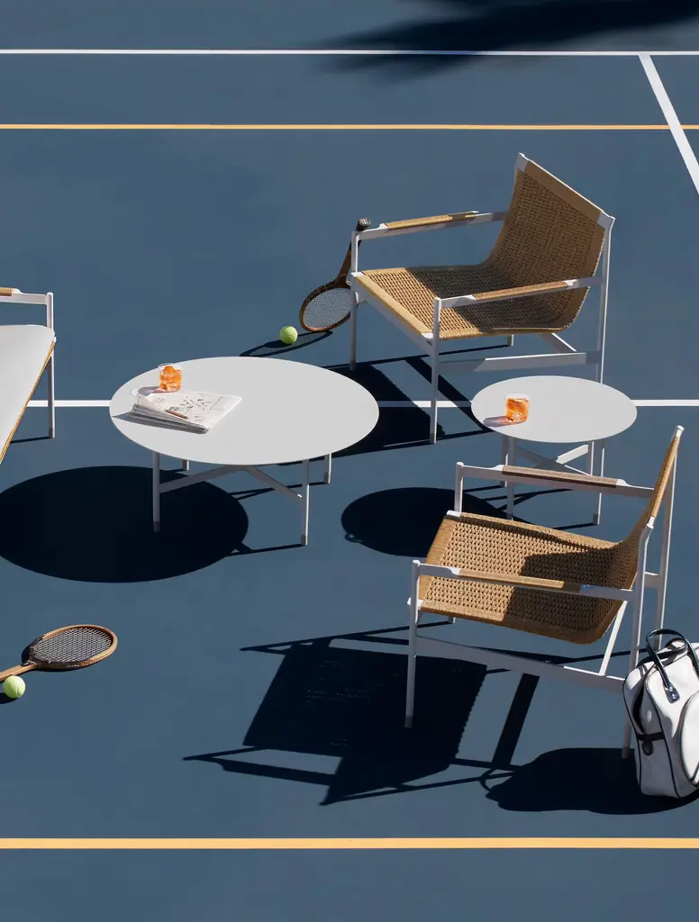 For the Sommer Outdoor Collection (2019), Copenhagen-based designer Chris Halstrøm wanted to give people the experience of indoor furniture in outdoor spaces. She brought the clean, airy lines of modern furniture into a durable coffee table made from powder-coated aluminum finished in your choice of black or white. Made in Indonesia.
