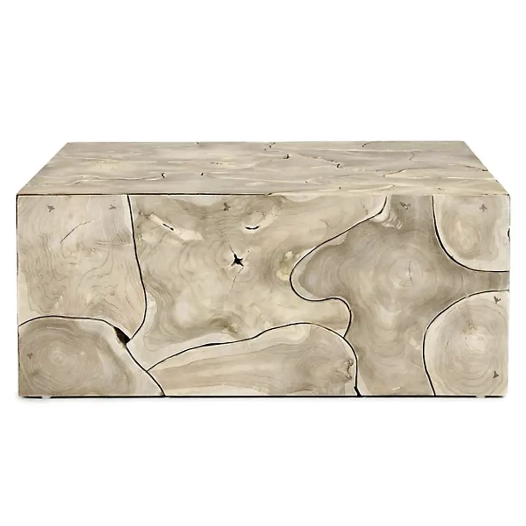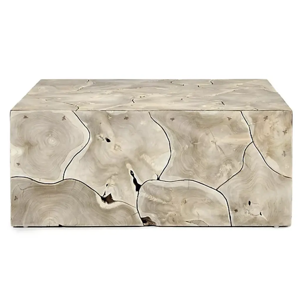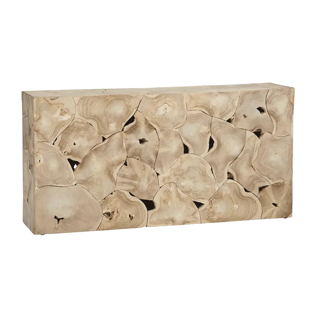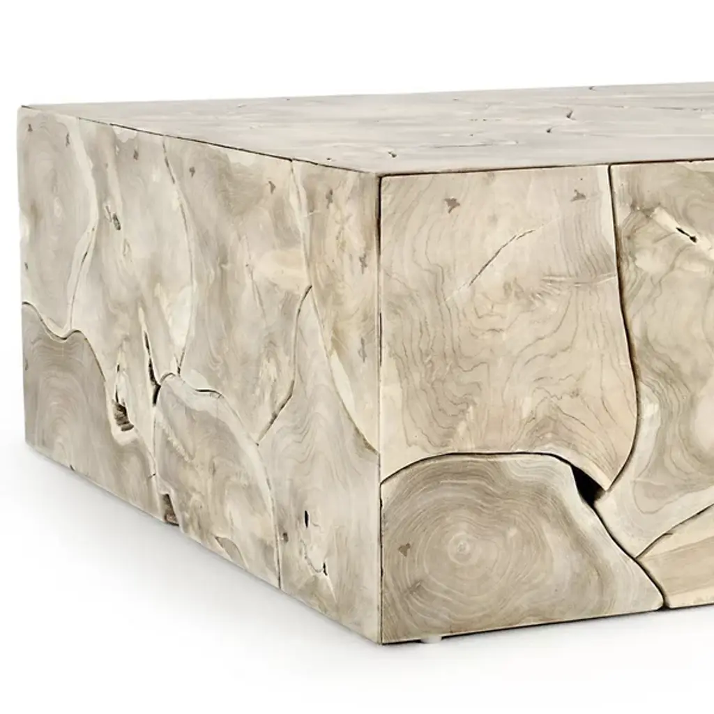 The Sorrento Coffee Table from Classic Home employs the same interlocking teak wood construction as its smaller counterpart but in a larger format suitable for central living room placement. Natural grain patterns flow across the surface in organic arrangements that showcase the wood's inherent beauty, which is sustainably sourced from responsible forestry practices. Its box-style construction provides substantial surface area for entertaining needs, while adjustable levelers within the plinth base ensure stability during use. This coffee table combines handcrafted details with environmental responsibility, meeting the practical surface requirements of daily living.