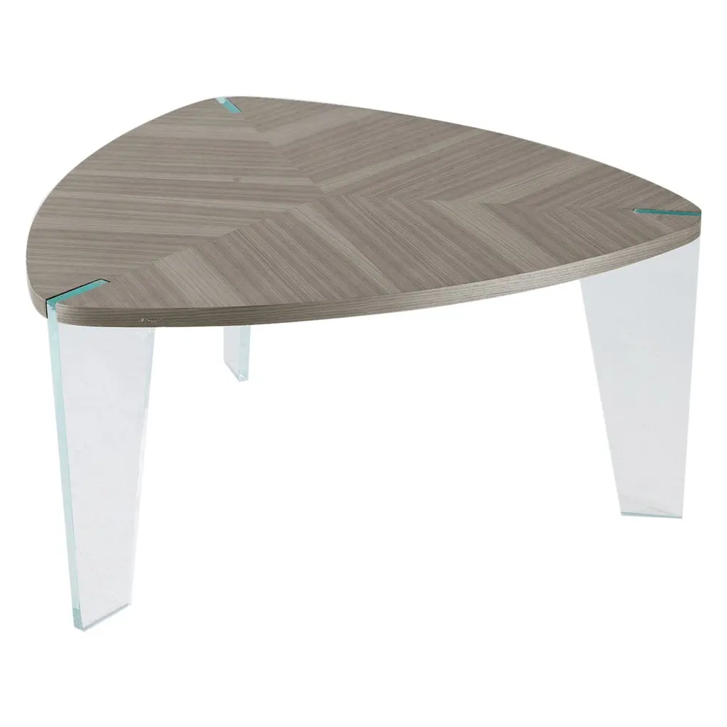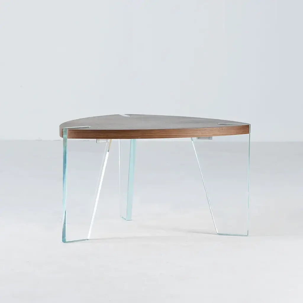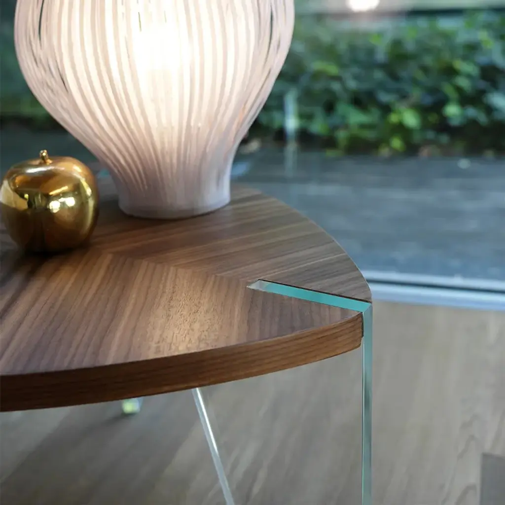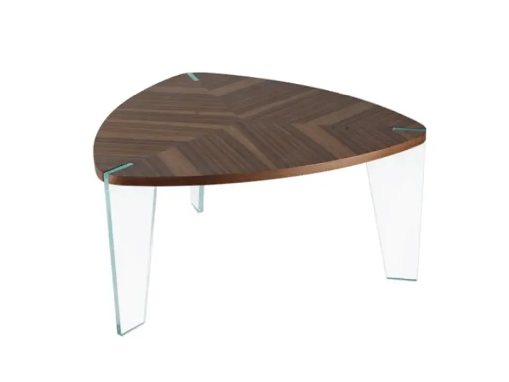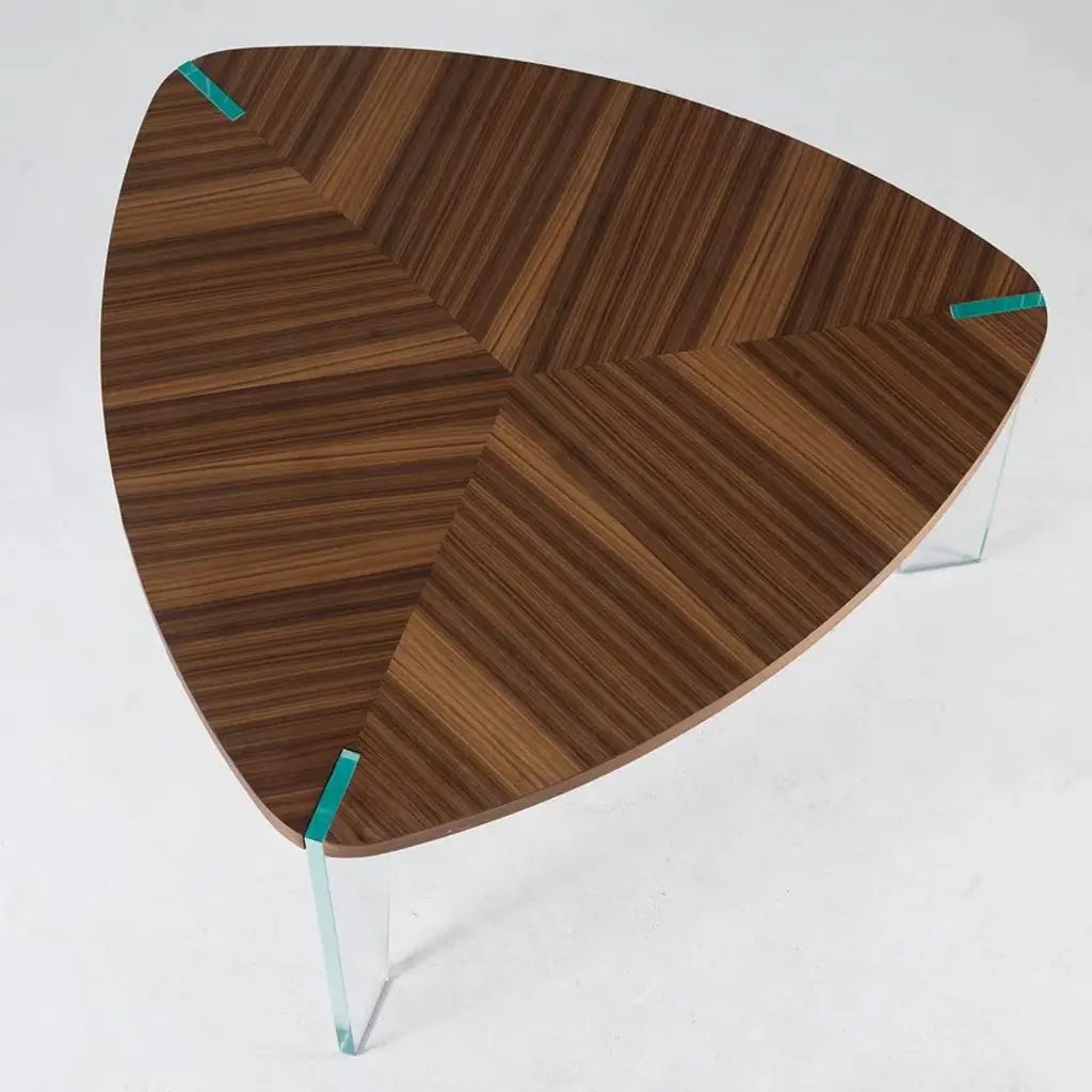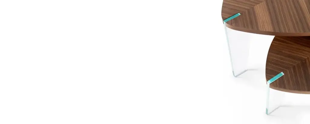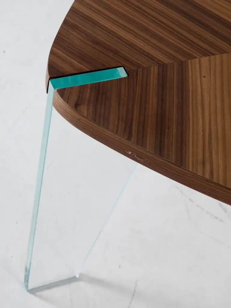Illusion combines with the substance of traditional solid wood processing. The Sospeso solid wood coffee table is created by the expert hands and vision of our artisans. The linear and formal design of the wooden top worked with inlay technique rests on legs in extra-clear glass with visible joints to convey a floating effect.