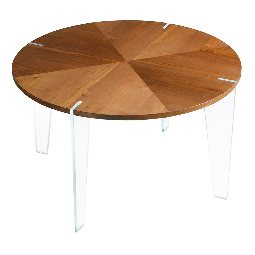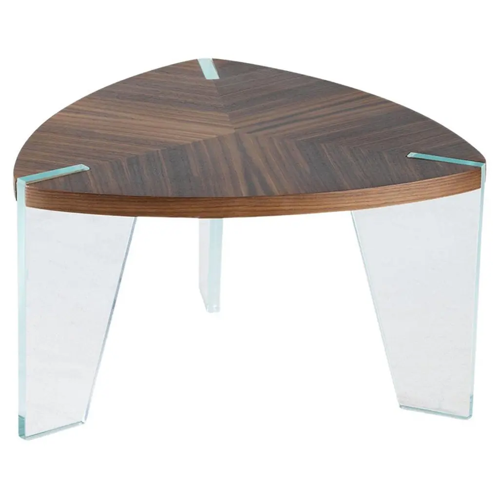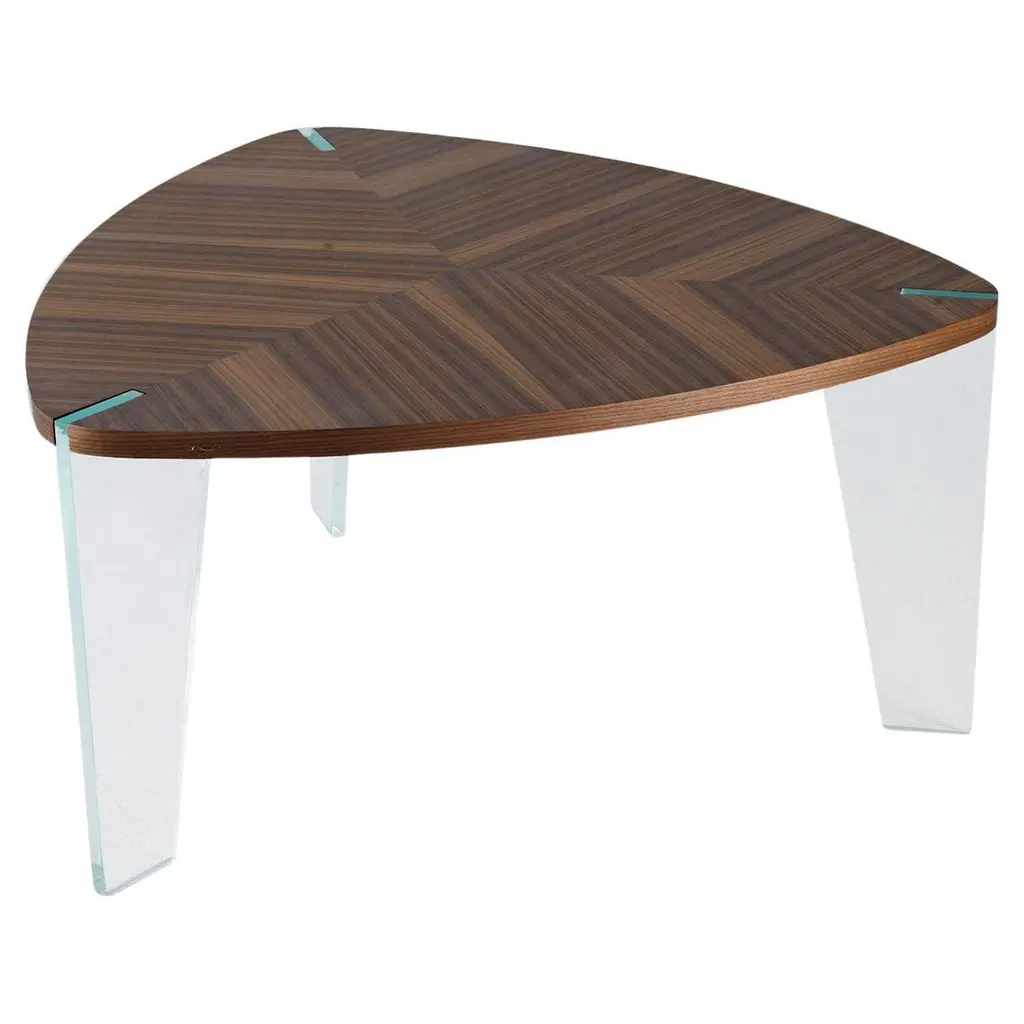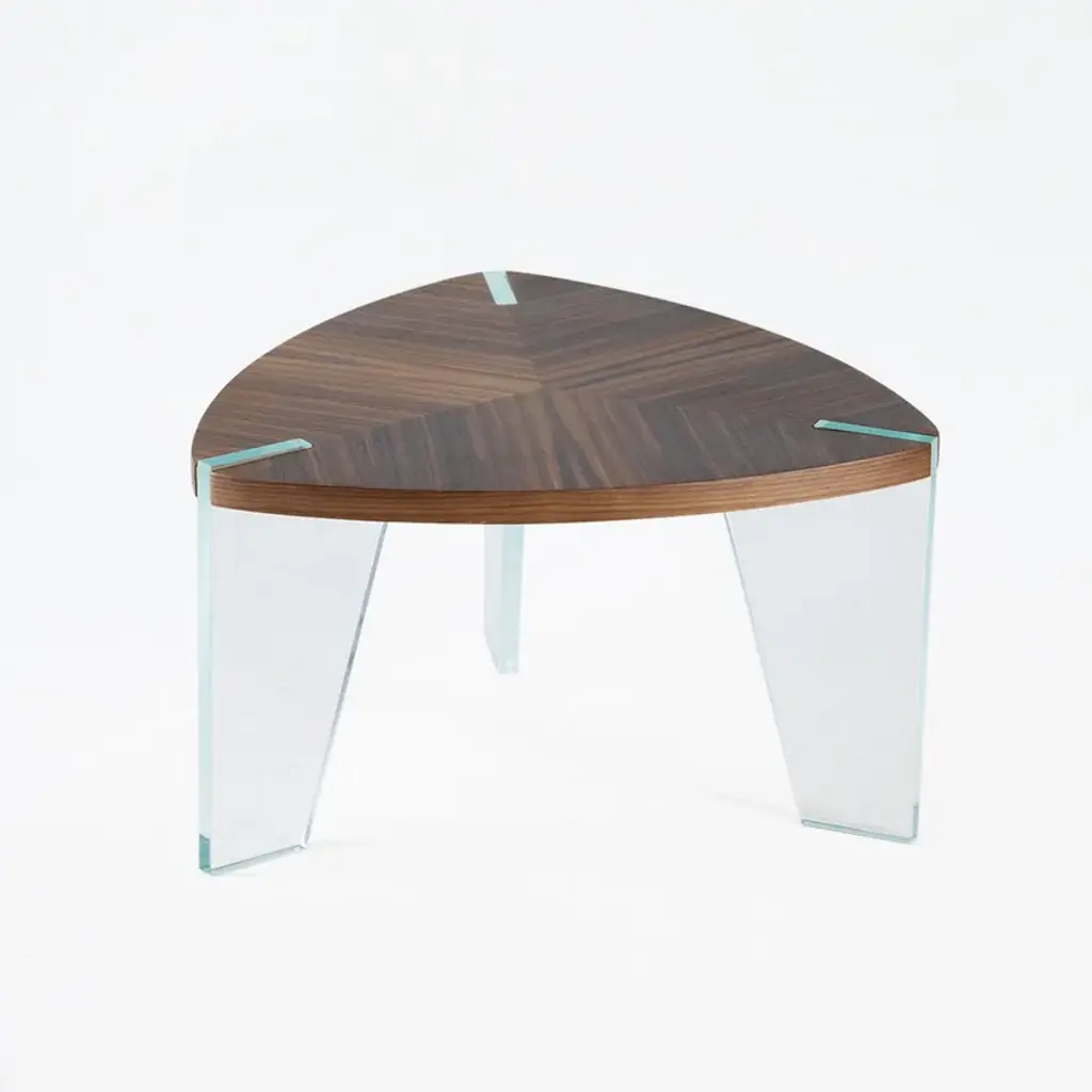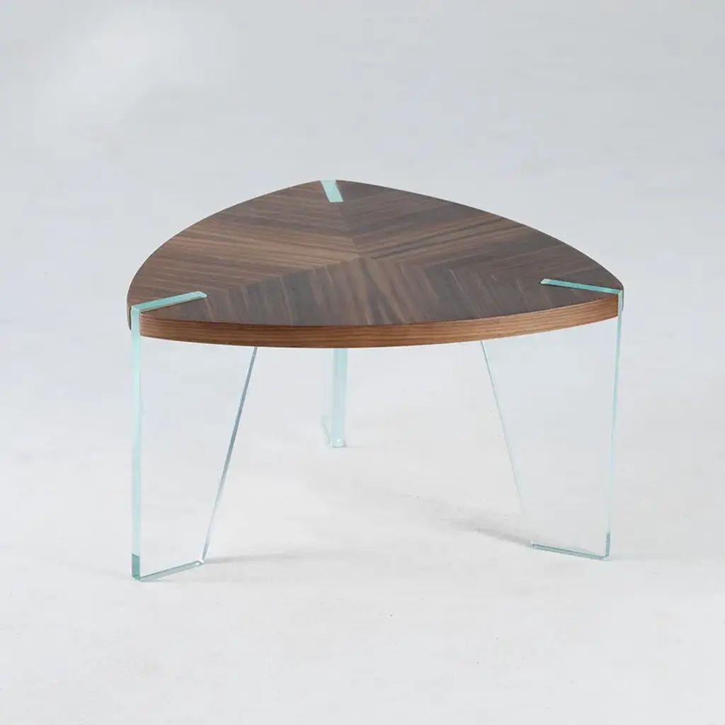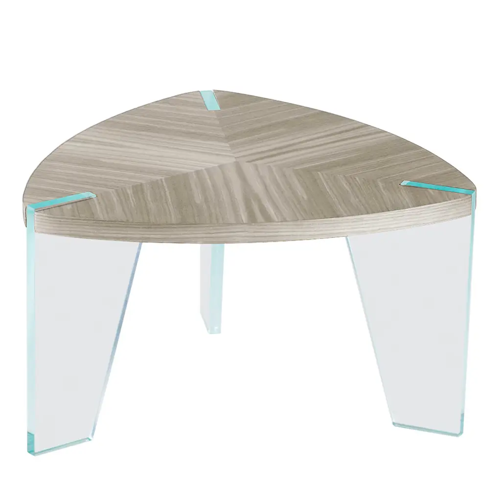 Illusion combines with the substance of traditional solid wood processing. The Sospeso solid wood coffee table is created by the expert hands and vision of our artisans. The linear and formal design of the wooden top worked with inlay technique rests on legs in extra-clear glass with visible joints to convey a floating effect.
