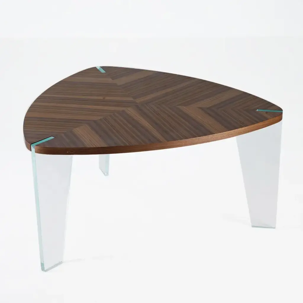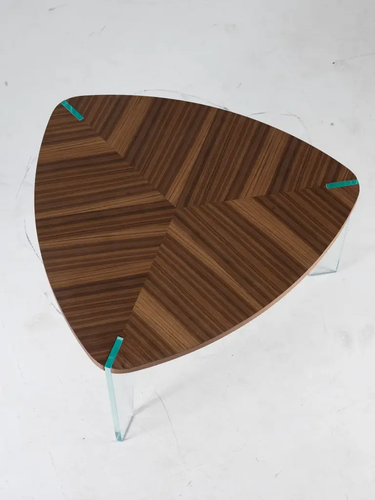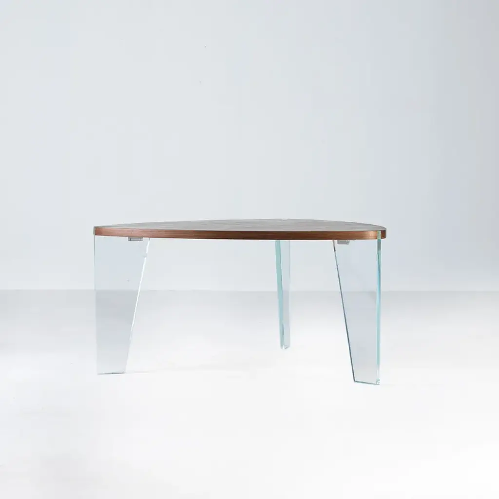 Illusion combines with the substance of traditional solid wood processing. The Sospeso solid wood coffee table is created by the expert hands and vision of our artisans. The linear and formal design of the wooden top worked with inlay technique rests on legs in extra-clear glass with visible joints to convey a floating effect.