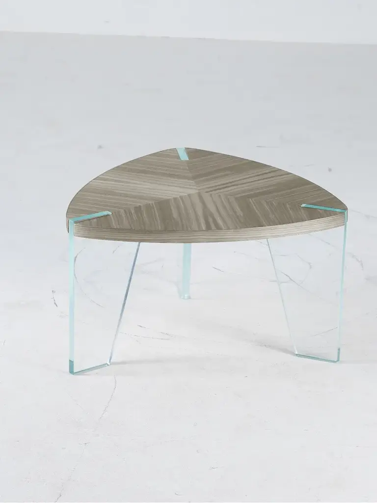 Illusion combines with the substance of traditional solid wood processing. The Sospeso solid wood coffee table is created by the expert hands and vision of our artisans. The linear and formal design of the wooden top worked with inlay technique rests on legs in extra-clear glass with visible joints to convey a floating effect.