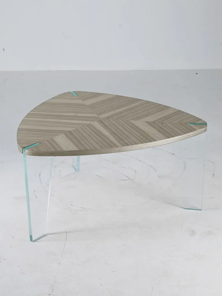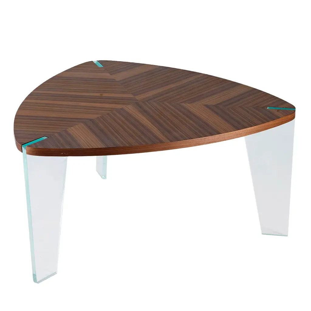 Illusion combines with the substance of traditional solid wood processing. The Sospeso solid wood coffee table is created by the expert hands and vision of our artisans. The linear and formal design of the wooden top worked with inlay technique rests on legs in extra-clear glass with visible joints to convey a floating effect.