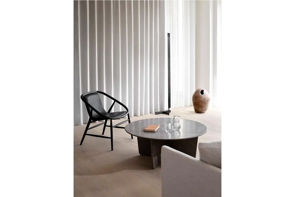 Space Copenhagen Tableau stone coffee table – roundThe Tableau series in stone reflects a passion for natural materials that runs deep in our DNA, involving expert craftmanship that lies at the core of our company. With its graceful geometric contours and x-shaped base, Tableau creates a soft silhouette that exudes effortless elegance.