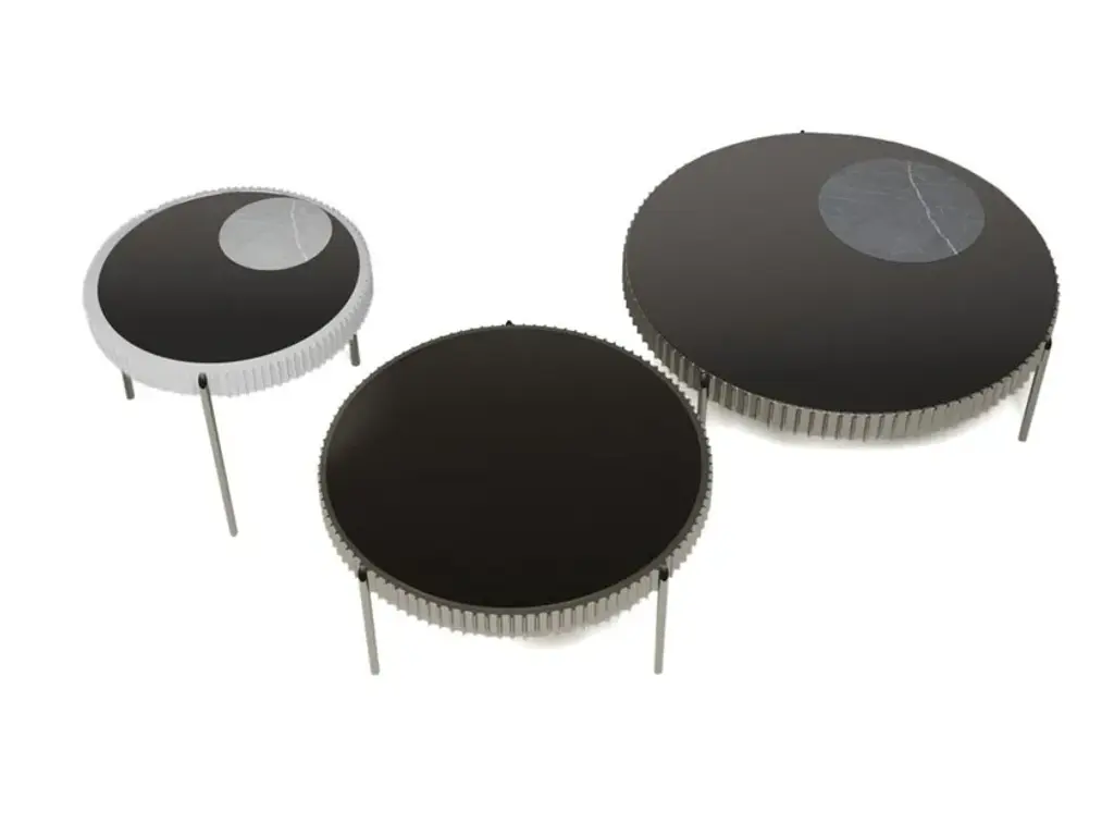 SPARKS is a round coffee table available in three sizes.It combines modern design and easy chic to create an eye-catching piece that seamlessly blends with any décor. With a black glass top and an elegant circular design, this table exudes contemporary style and sophistication.Crafted with precision and attention to detail, it features a sturdy MDF structure and metal legs for stability and durability. The tabletop is a blend of tempered glass and circular ceramic, creating a unique and visually appealing surface.The coffee table is suitable for both residential and commercial projects, making it a versatile choice for various settings. Enhance your living room or add a touch of contemporary elegance to your office space with this round table that combines style, functionality, and exceptional craftsmanship.Structure: MDFLeg Finish: MetallicTable Top: Solid Surface Blend of tempered glass and a circular ceramic