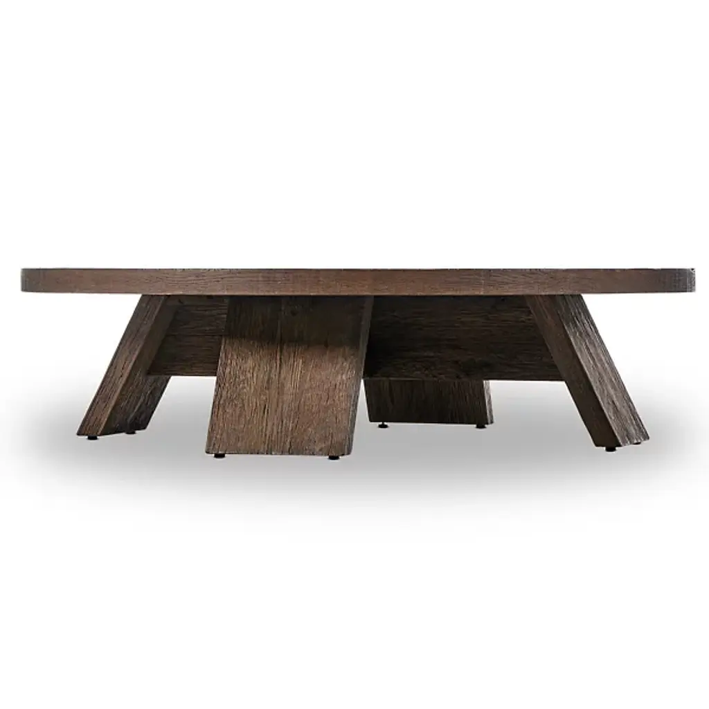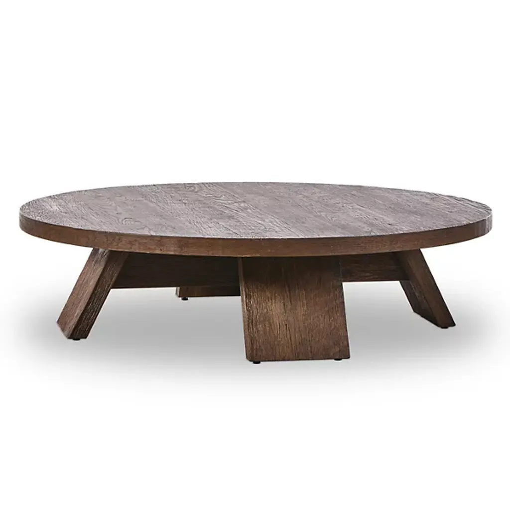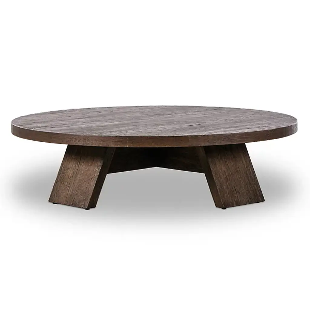 The Sparrow Coffee Table from Four Hands is made from resawn oak, which showcases a charmingly simple yet rich design, boasting a rounded silhouette and splayed legs that infuse a subtle hint of angular intrigue. Its textured construction exudes a rustic modern aesthetic, capturing the essence of natural beauty and rugged elegance. With its minimalist form and timeless appeal, this coffee table seamlessly integrates into contemporary living spaces, blending functionality with rustic charm to create a captivating focal point in any room.
