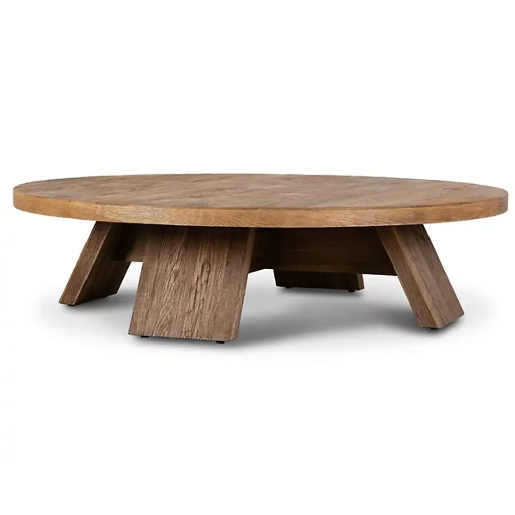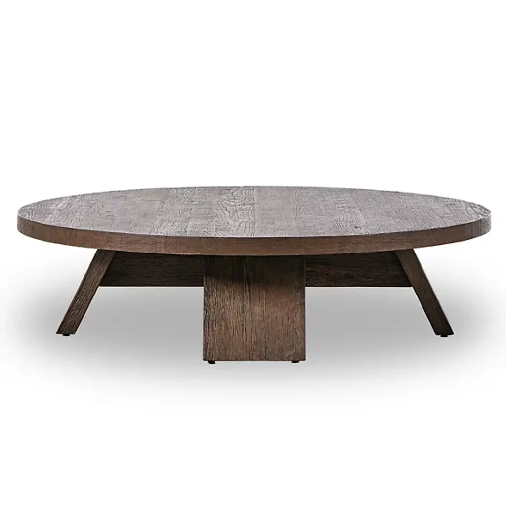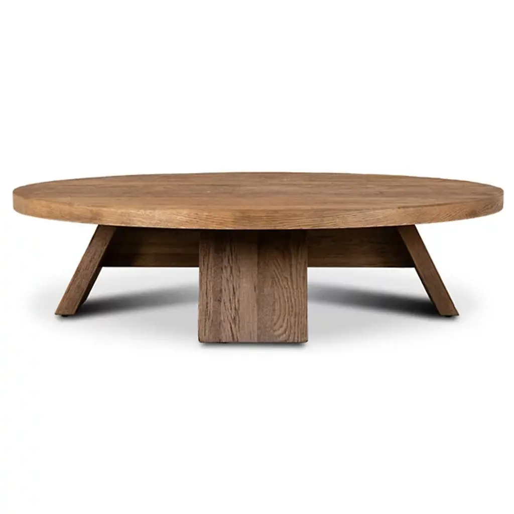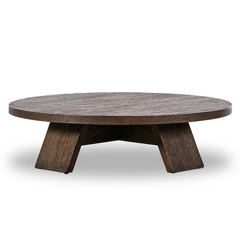 The Sparrow Coffee Table from Four Hands is made from resawn oak, which showcases a charmingly simple yet rich design, boasting a rounded silhouette and splayed legs that infuse a subtle hint of angular intrigue. Its textured construction exudes a rustic modern aesthetic, capturing the essence of natural beauty and rugged elegance. With its minimalist form and timeless appeal, this coffee table seamlessly integrates into contemporary living spaces, blending functionality with rustic charm to create a captivating focal point in any room.