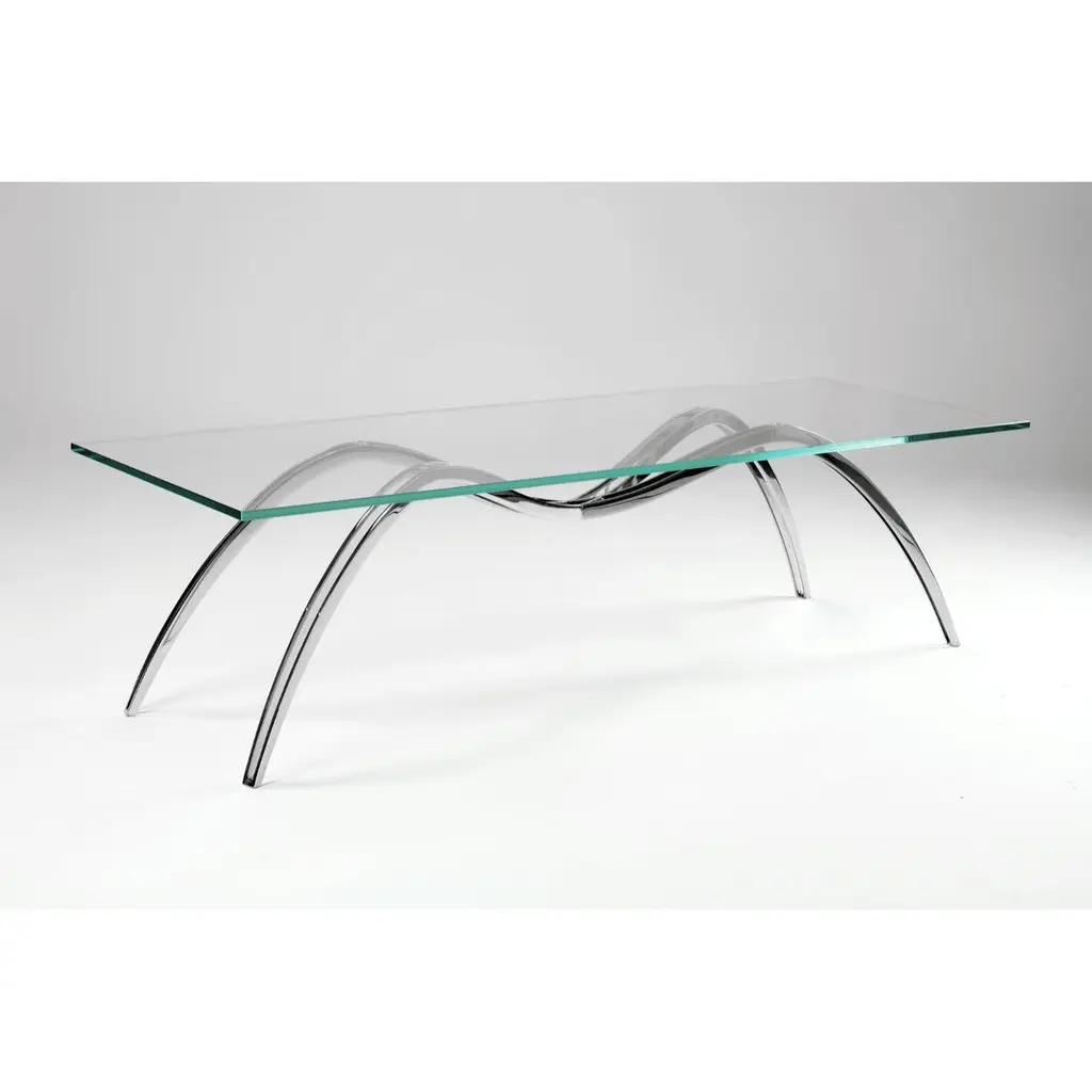 Spider Coffee Table in Crystal Glass & Steel by Barberini & GunnellLimited Edition of 30 + 2 AP + 1 p.Dimensions: D 50 x W 135 x H 38 cm.Materials: Tempered extra-clear crystal glass and mirror-polished stainless steel.Limited Edition, signed and numbered by the artists, comes with a Certificate of Authenticity. Please contact us.Barberini & Gunnell, founded in 2009 in Ancona, Italy by architects Francesco Barberini and Nina A. Gunnell, is the result of a philosophy, thinking of design and architecture as a work of art. The architectural and interior design activity carried out by ‘The Studio’ complements the creations of ‘The Atelier’, which are the result of an artistic playground and highly skilled craftsmanship, a place where artworks and sculptures come to life.The Studio Barberini & Gunnell designs high-end residential and retail spaces that are out of the ordinary and beyond fashion. Barberini & Gunnell creates refined, timeless, and harmonious environments by inserting collectible design, “talking pieces” that create unique and bespoke homes according to the client’s eclectic and aesthetic desires.The Atelier Barberini & Gunnell creates artworks and collectible designs, one-off pieces, and limited editions for a small niche of high-end projects; bespoke solutions for luxury and ultra-luxury projects all over the world.The choice of the most precious materials, the maniacal cure for detail is the basis of our modus operandi aiming to create timeless pieces, using marine grade stainless steel, brass, cast bronze, precious wood essences, marbles, onyxes, semi-precious gemstones, crystal glass, together with the most sophisticated technologies and quality craftsmanship.This allows us to work for clients like Four Seasons Hotels, The Ritz Carlton, Regent Seven Seas Cruises, Louis Vuitton, Cartier, Dior, Paramount Pictures, Peter Marino Architects, Sotheby’s, Bonhams, Foundation of Maestro Andrea Bocelli, and Ridley Scott (House of Gucci), besides our private collectors and clients.Values such as sustainability, the use of natural materials, the rediscovery of eco-sustainable craftsmanship, and the protection of refined and ancient techniques that are increasingly being lost are the basis of the design.Barberini & Gunnell’s signature works are exhibited at international art fairs such as Art Basel Design//Miami, Art Miami, Art Basel Switzerland, PAD London, PAD Genève, PAD Paris, PAD Monaco, Salon Art+Design New York…