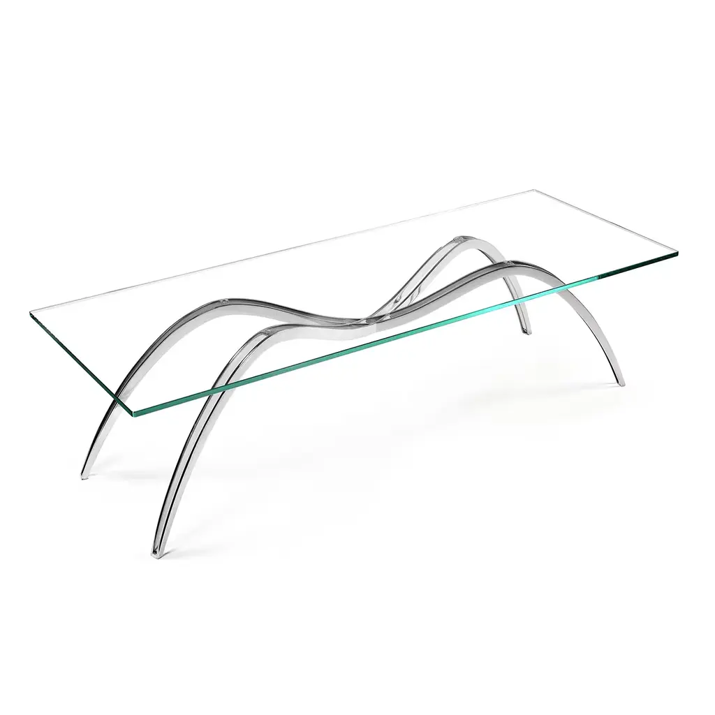 The 'Spider Skeleton Junior' coffee table is made of mirror-polished stainless and table top in extra clear crystal glass—Limited Edition of 30. The fascinating projection of the spider’s shadow inspired this table. We started with a shadow, uncatchable and vanishing, to achieve the zoomorphic structure. Each table is hand-signed and numbered by the artists (engraved) and they are 100% handmade in Italy.