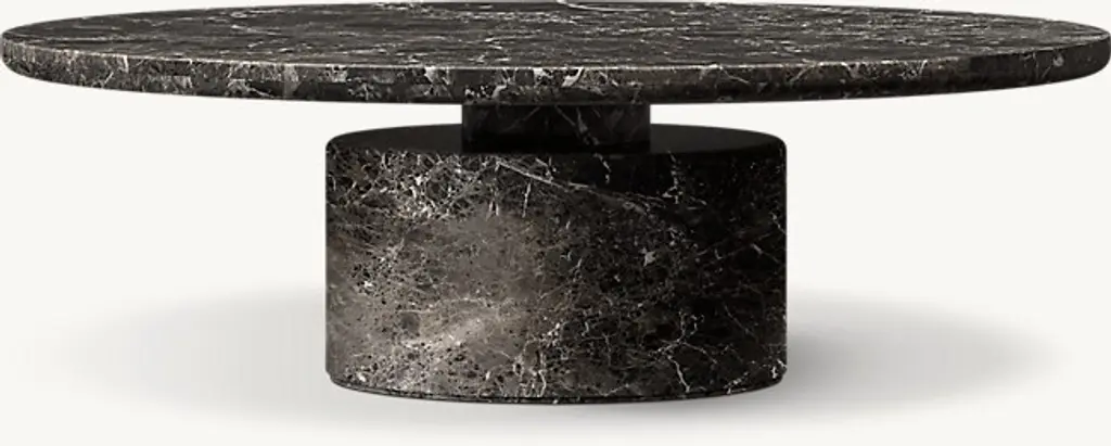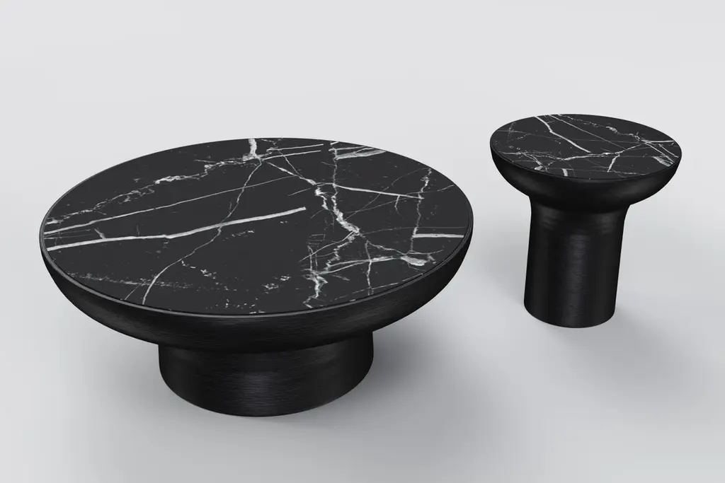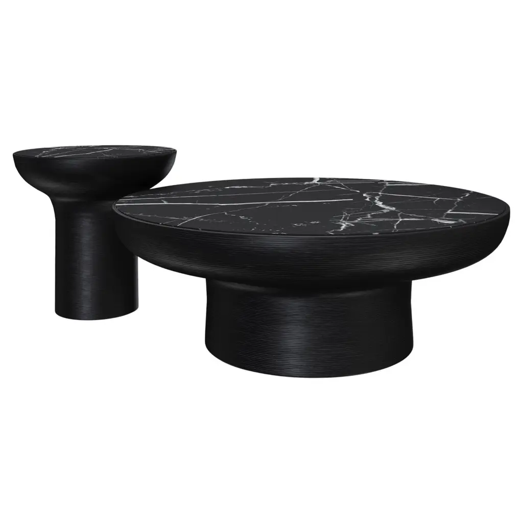 The design is inspired by the traditional art of forming clay on a spin wheel. The coffee table features a black marble top and a black base made with textured resin mold to mimic a thrown piece. Measures: Low table: diameter 100cm x height 36.5cmMaterials: Fiber reinforced resin, MDF wood, marble.We will be glad to check with the factory’s technical team if sizes, finishes, and colors can be customized. We do our best to expedite production and to ship and deliver product within the listed lead time, however current lead times might be longer due to global shipping backlog and delays. These delays are out of our control and cannot be a reason to cancel an order.