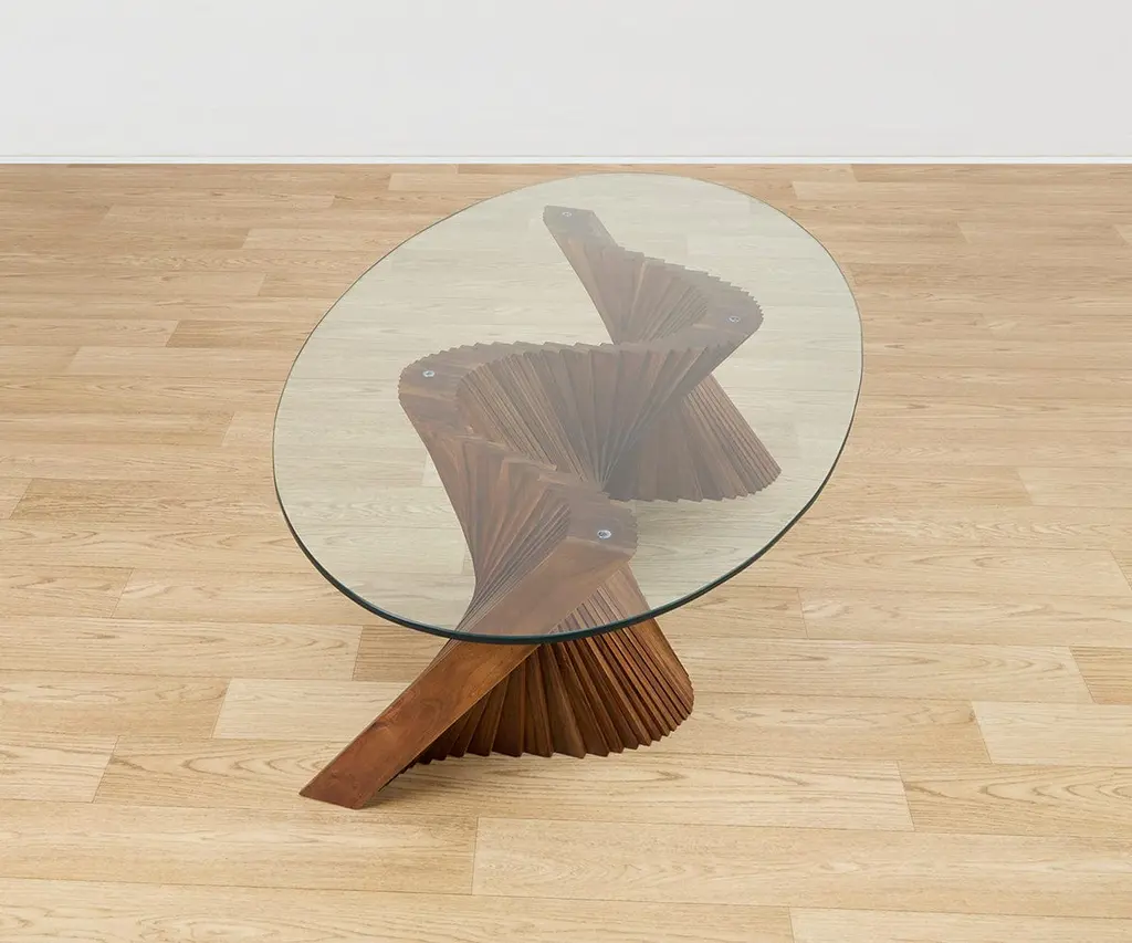 With a striking, sculptural base handcrafted from suar wood and topped with tempered glass, the Spira Coffee Table is the perfect centerpiece for any design-forward decor style.