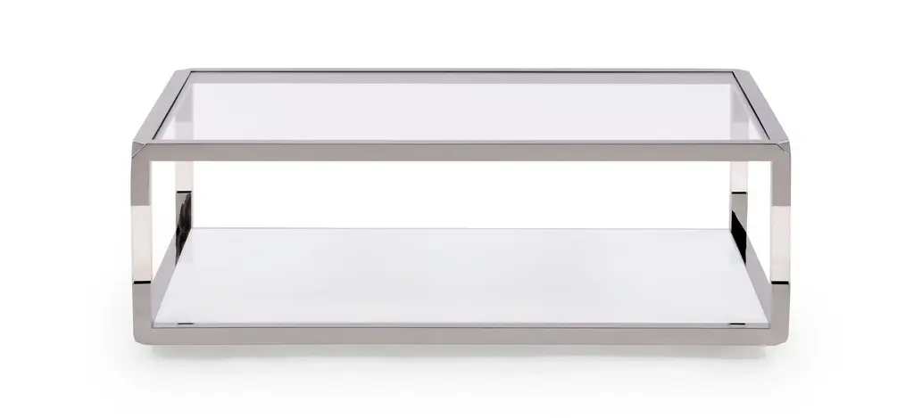 In the spirit of Bauhaus, the Superia Coffee Table not only adds an appealing, architectural aesthetic, it is also built for longevity. This contemporary coffee table features a sleek yet sturdy frame of polished stainless steel and a clear glass tabletop and a mirror glass lower shelf.Download Assembly Instruction
