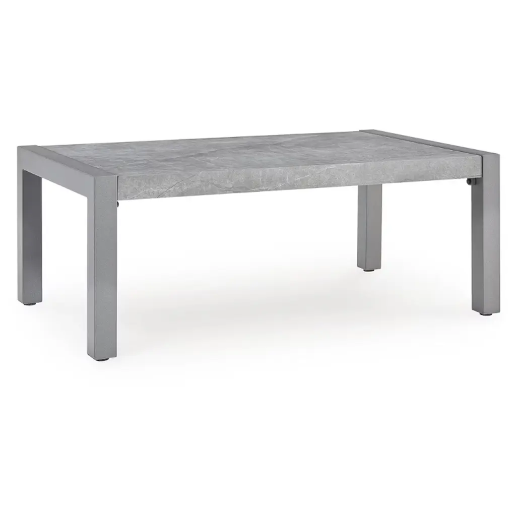 The Salinas coffee table stands out for its refined materials. The metal structure is enriched by a thin plate of slightly reflective lava stone, which gives charm to the outdoor environment in which it is placed.