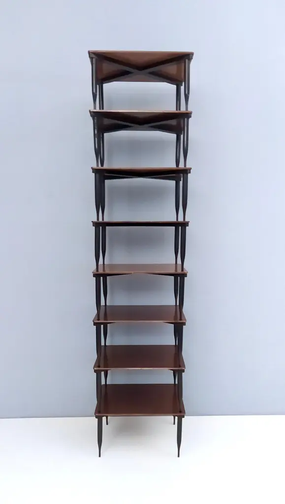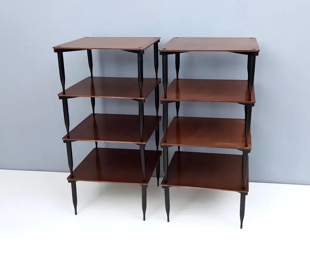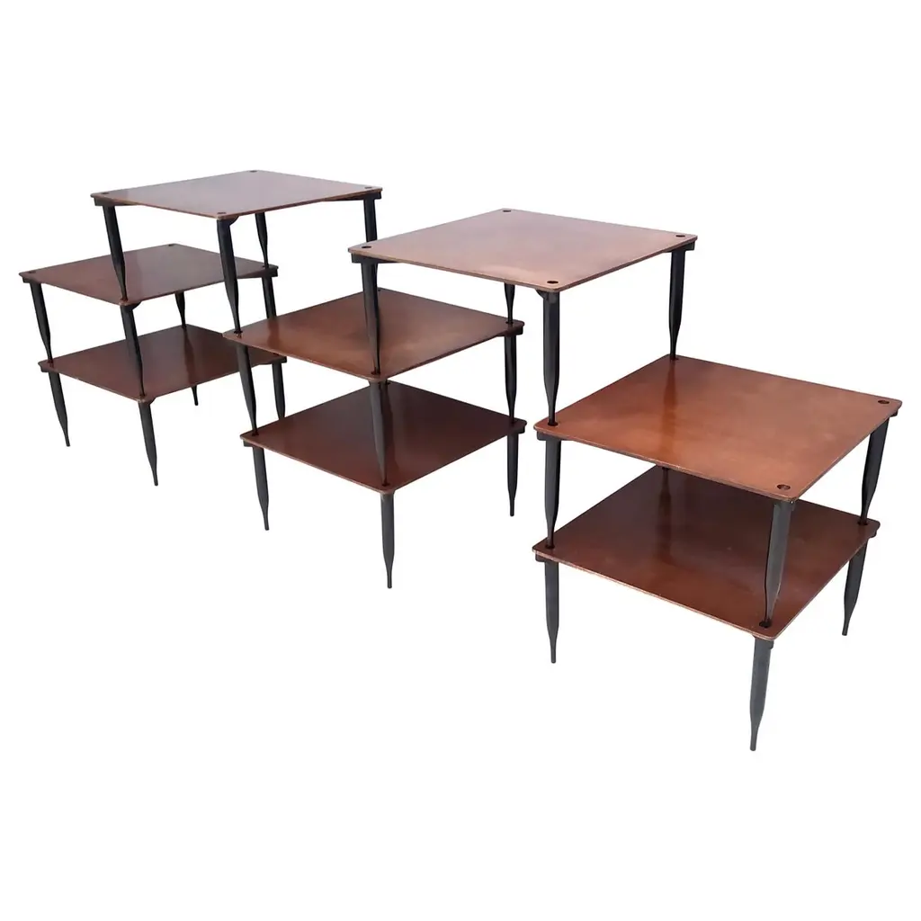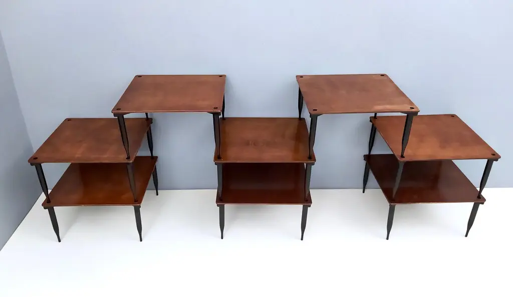 Made in Italy, 1954.These are stackable coffee tables model T8 designed by Vico Magistretti and produced by Azucena, Milan (Italy), in 1954. They feature an ebonized beech frame and a walnut top.These coffee tables are vintage, therefore they might show slight traces of use, but they can be considered as in very good original condition.The decorative items are for illustrative purposes only, but some of them are available on our 1stdibs storefront. The price is per piece. 8 pieces available.Measures: Width 50 cm Depth 50 cmHeight 25 cm. Order it now!We sell the best quality pieces and we offer an amazing service: if it's not during night time, we answer within 2 hours and we absolutely love to follow every step of the purchase and even after. As matter of fact we really appreciate our customers’ feedback and when we receive pictures of our pieces in their new homes.We assist you during the process and answer all your questions. In addition to this, we always review the pieces before shipping, so that you receive the goods at its very best. We provide the best possible quotes and professionally and carefully pack the items. Insurance is included. And if there is any issue, it is our mission to make so you don't have to worry: we will always be there for you to assist in any way possible.