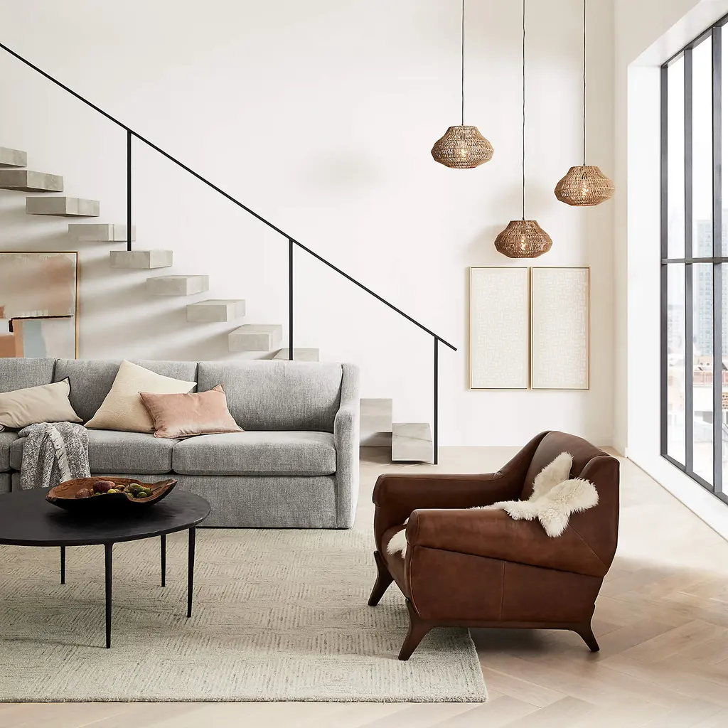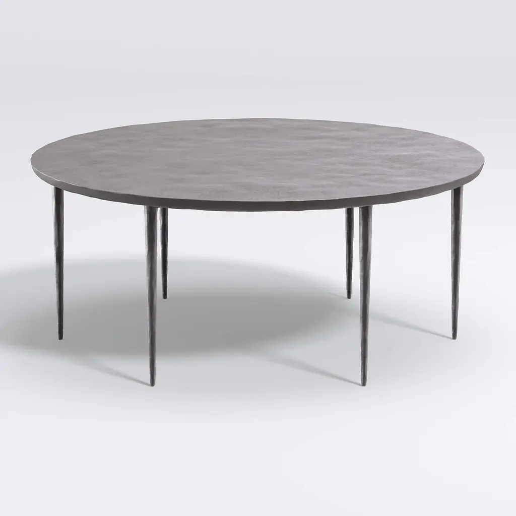 Our Staal coffee table started as a hand-sculpted round of plaster, from which a mold was made and cast with aluminum. Finished with a blackened patina, the undulating surfaces and porous quality of the cast metal top imbue the table with organic vitality, while slender, tapered legs and the top's reverse beveled edge lighten the look and keep the lines clean. The Staal coffee table is a Crate and Barrel exclusive.