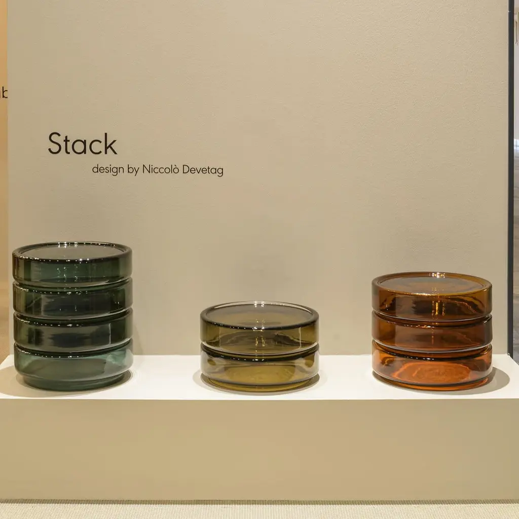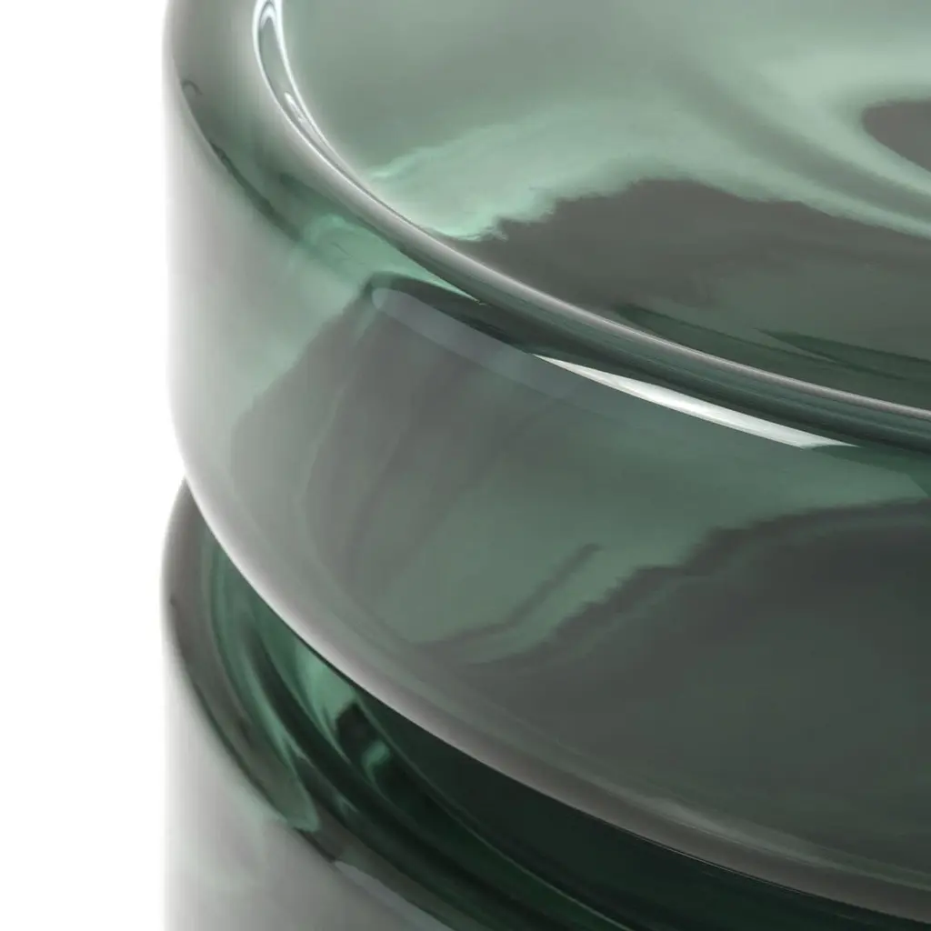 Stack 880 by Niccolò Devetag is a green round glass coffee table from the Stack collection, featuring modular elements that can be stacked to create tables of varying heights. The design explores the interaction between glass and light, producing captivating color reflections while ensuring durability and infinite recyclability. Its contemporary form and flexibility make it a versatile addition to modern interiors.
