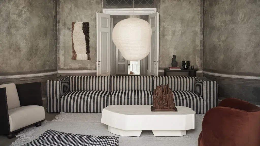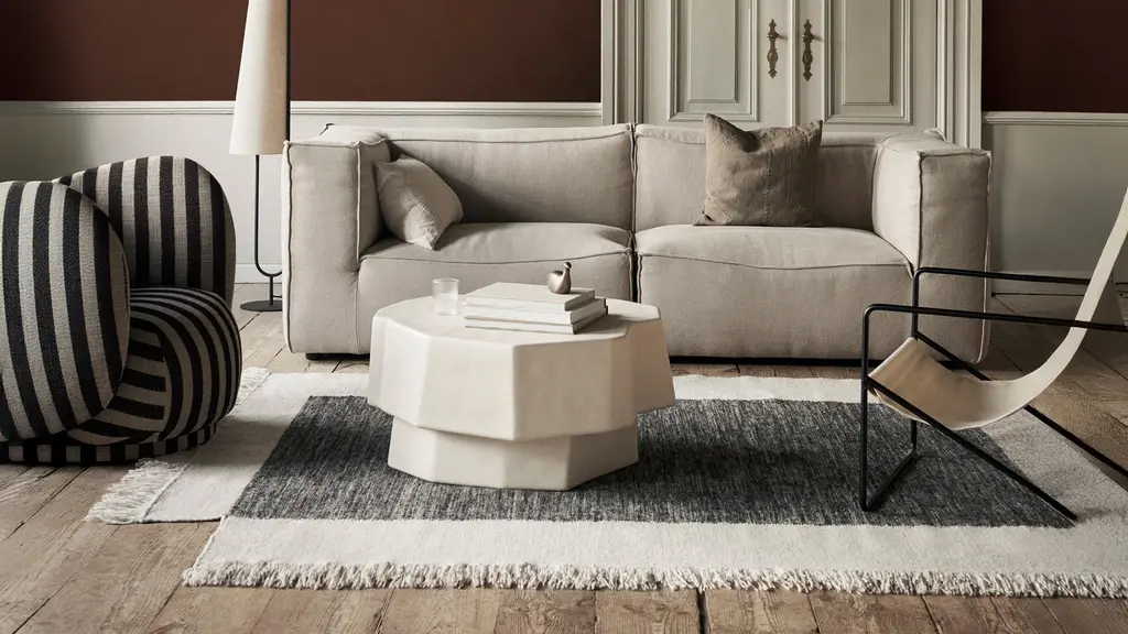 Inspired by the unique volcanic rock formations found on the ancient island of Staffa in Scotland, the Staffa collection features a series of bold furniture pieces. Paying homage to their namesake, which means pillar in old Norse, every piece is crafted entirely from glass fibre reinforced concrete, using an innovative casting process that provides each item with a rough, uneven shape reminiscent of blocks of carved stone. Suitable for both indoor and outdoor use, the Staffa Coffee Table presents an intriguing piece that blurs the line between art and functionality. Place the contemporary piece in the centre of your living room or outside lounge area and watch as it naturally sparks conversation.Designed and produced by the Copenhagen-based studio Ferm Living.