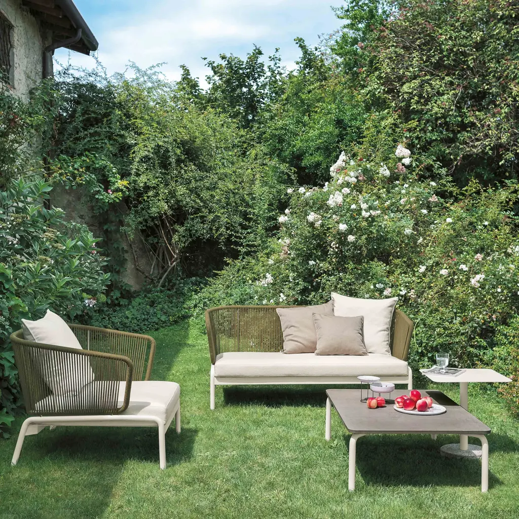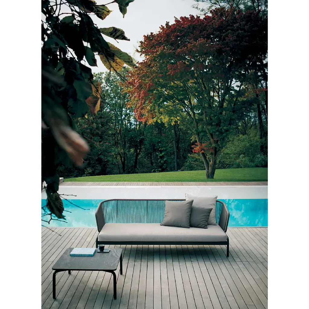 SPOOL gives life to a new, vibrant story composed of weaves and attractive shadow effects created by the light that filters from the sections of the backrest: the result is a collection with an explosive design, a perfect balance between strength and lightness that doesn't neglect the comfort of the seating that can accommodate a large number of soft cushions.