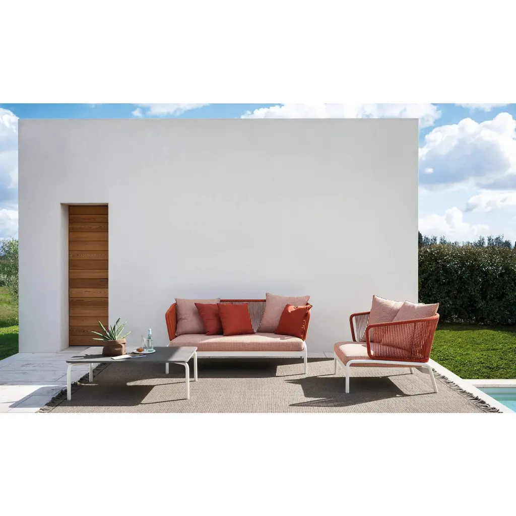 SPOOL gives life to a new, vibrant story composed of weaves and attractive shadow effects created by the light that filters from the sections of the backrest: the result is a collection with an explosive design, a perfect balance between strength and lightness that doesn't neglect the comfort of the seating that can accommodate a large number of soft cushions.