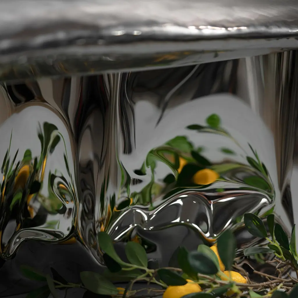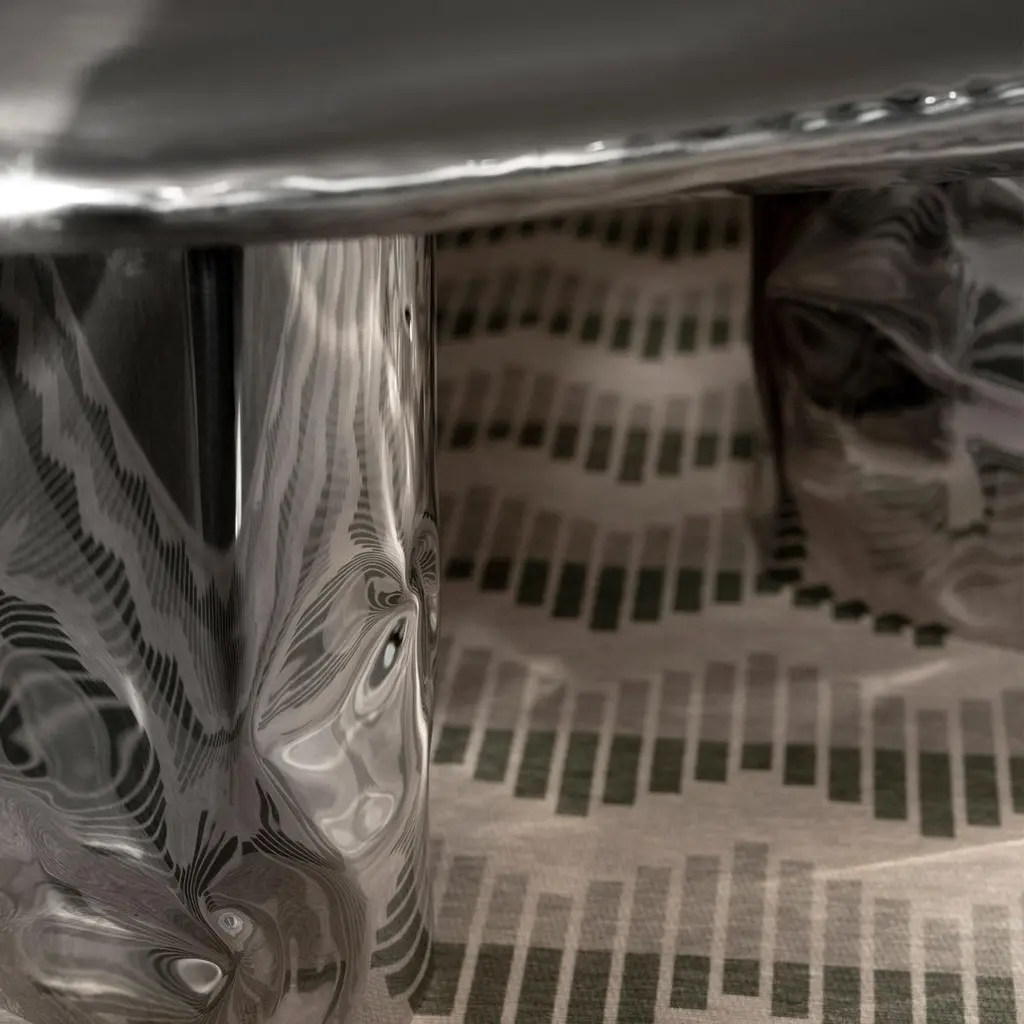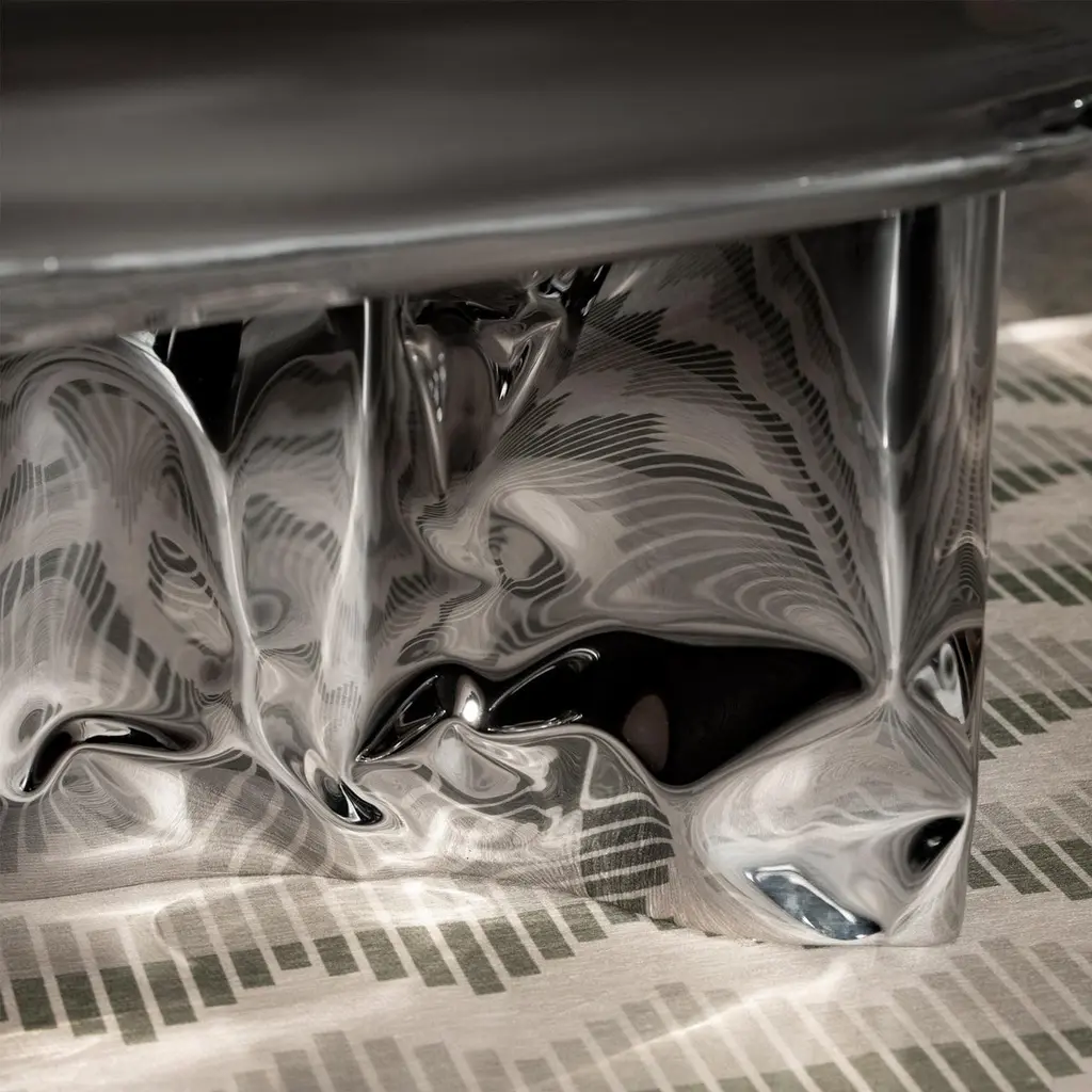 Stainless Steel Pebble Coffee Table by NITUSH AROOSHDimensions: W 150 x D 80 x H 40 cmMaterials: Stainless Steel (Grade 304)Finish: Antique & PolishedAvailable in different finishes. All our lamps can be wired according to each country. If sold to the USA it will be wired for the USA for instance. Please contact us.Aroosh and Nitush Mahipal, the creative minds behind Nitush-Aroosh, were born and raised in New Delhi, India, amidst a vibrant cultural and artistic milieu. Their parents instilled in them a love of beauty and creativity from a young age, and they were fortunate to travel extensively to different parts of the world, where they were exposed to diverse forms of art, design, and architecture. From childhood, Aroosh and Nitush were captivated by the stainless steel available at their family’s factory, spending countless hours creating their toys and honing their skills. This fascination laid the foundation for their future design and art endeavors, eventually leading to the birth of Nitush-Aroosh.The Mahipal brothers use innovative techniques to create a crumbled effect on stainless steel, resulting in sculptural pieces that appear to be made of a different material altogether. Their sculptural objects, including furniture, lights, sculptures, and wall installations, are carefully crafted to invite the viewers to embark on self-discovery and introspection.The Mahipal brother’s maiden international art exhibition at the Marbella Art Fair, Spain, in November 2021 was met with great enthusiasm and acclaim. Following this, they showcased their creations in two more exhibitions in Spain in 2022, where they left an indelible mark with their extraordinary pieces.White Domus took their artistic expression to new heights in 2023 when they held their first solo exhibition at a leading art gallery in Madrid, Spain.