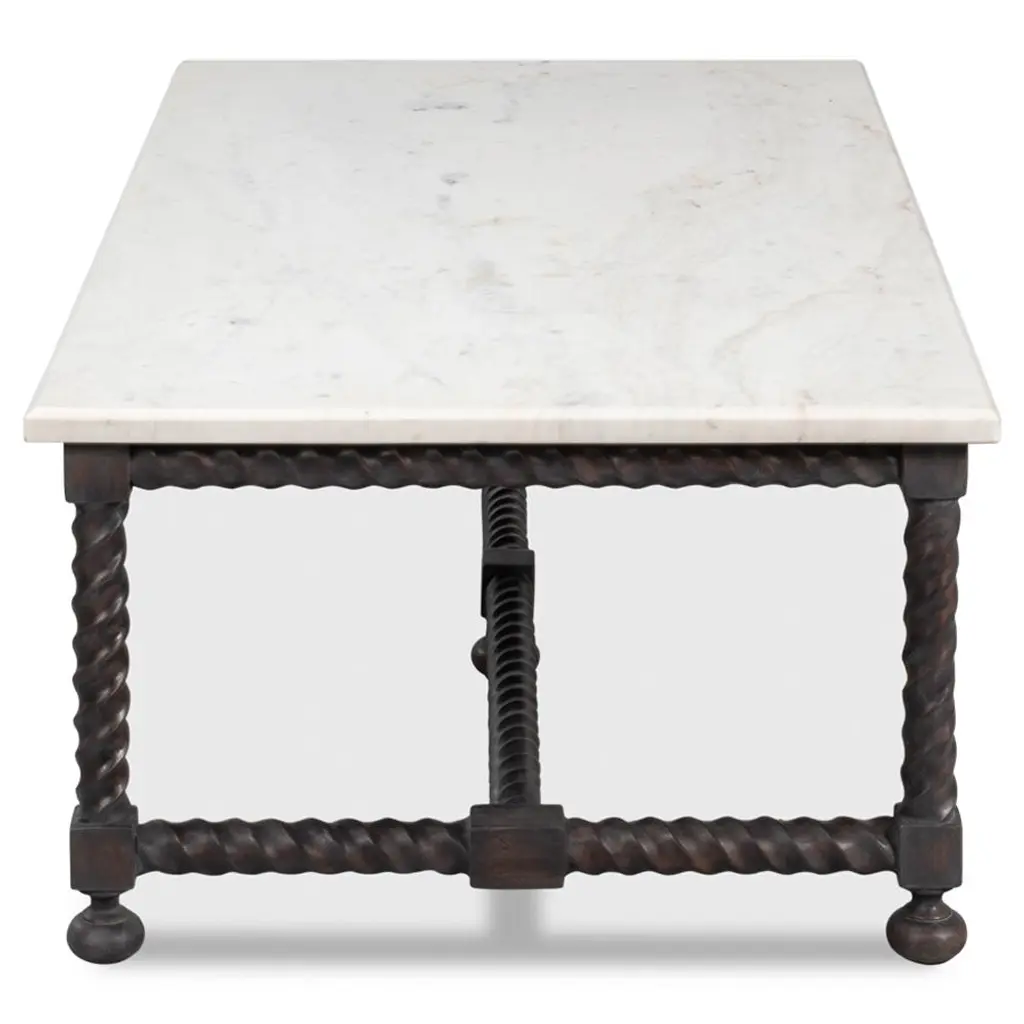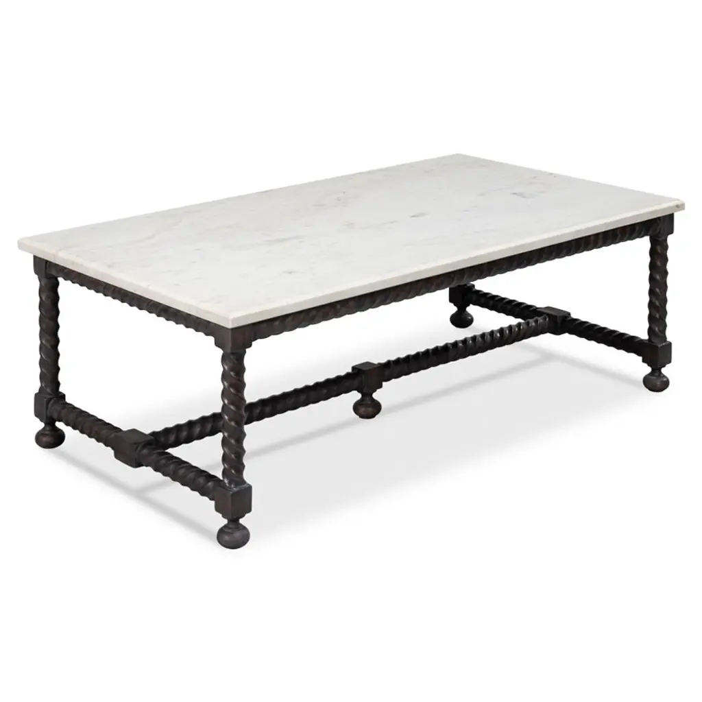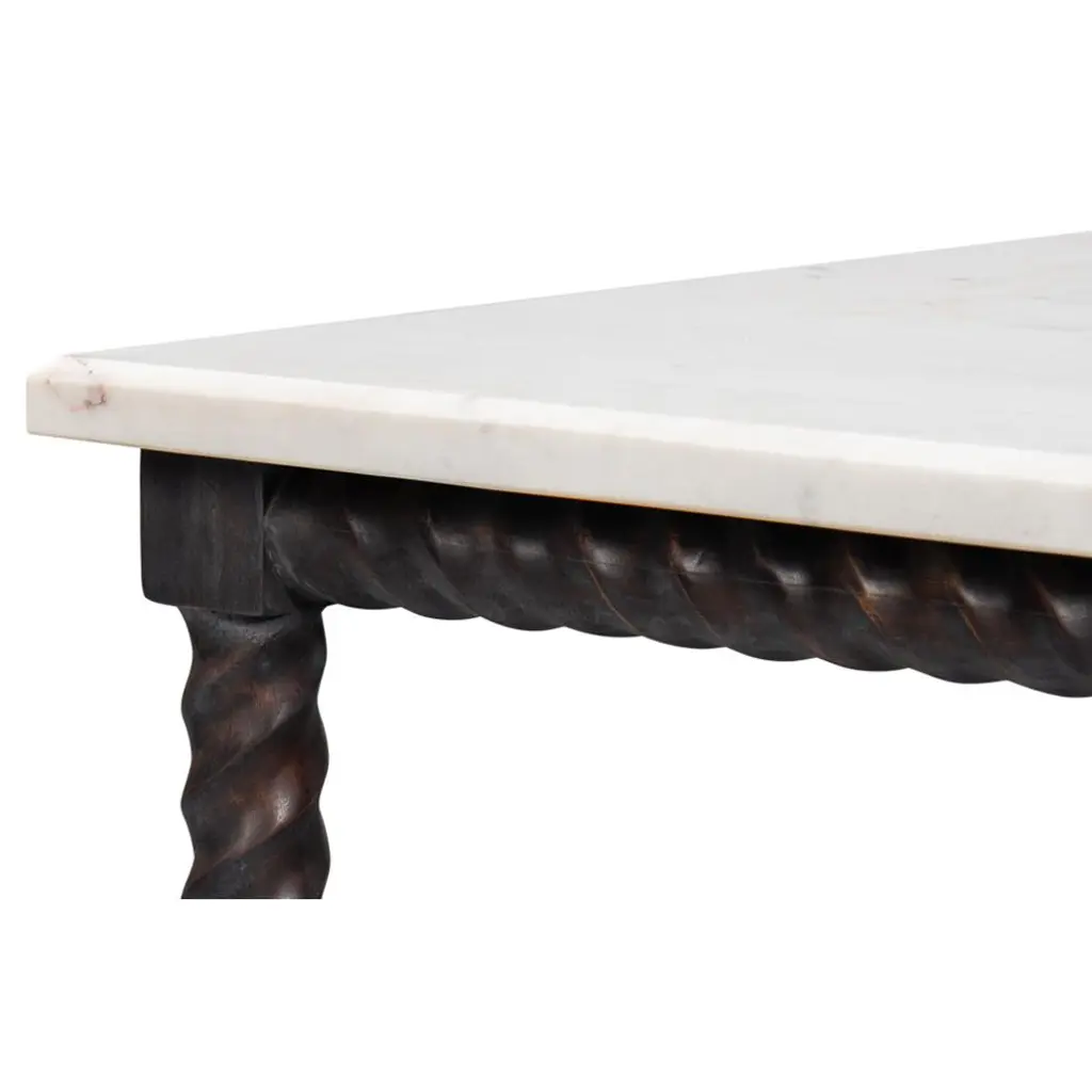 Stella Updated Traditional White Marble Brown Wood Rectangular Coffee Table