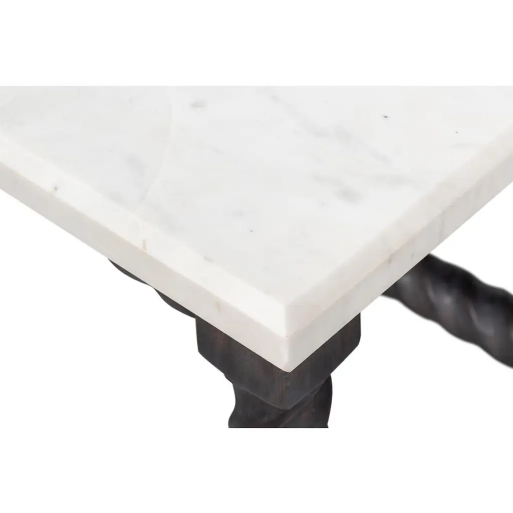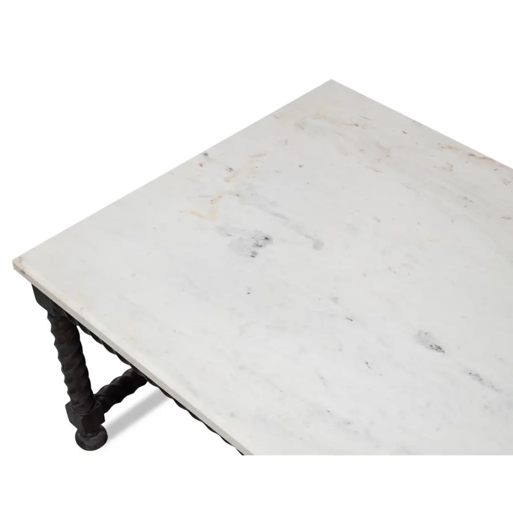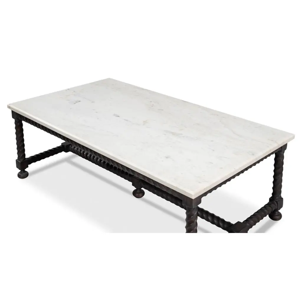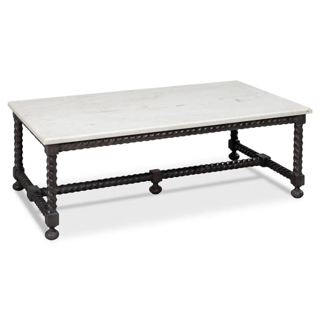 Stella Updated Traditional White Marble Brown Wood Rectangular Coffee Table