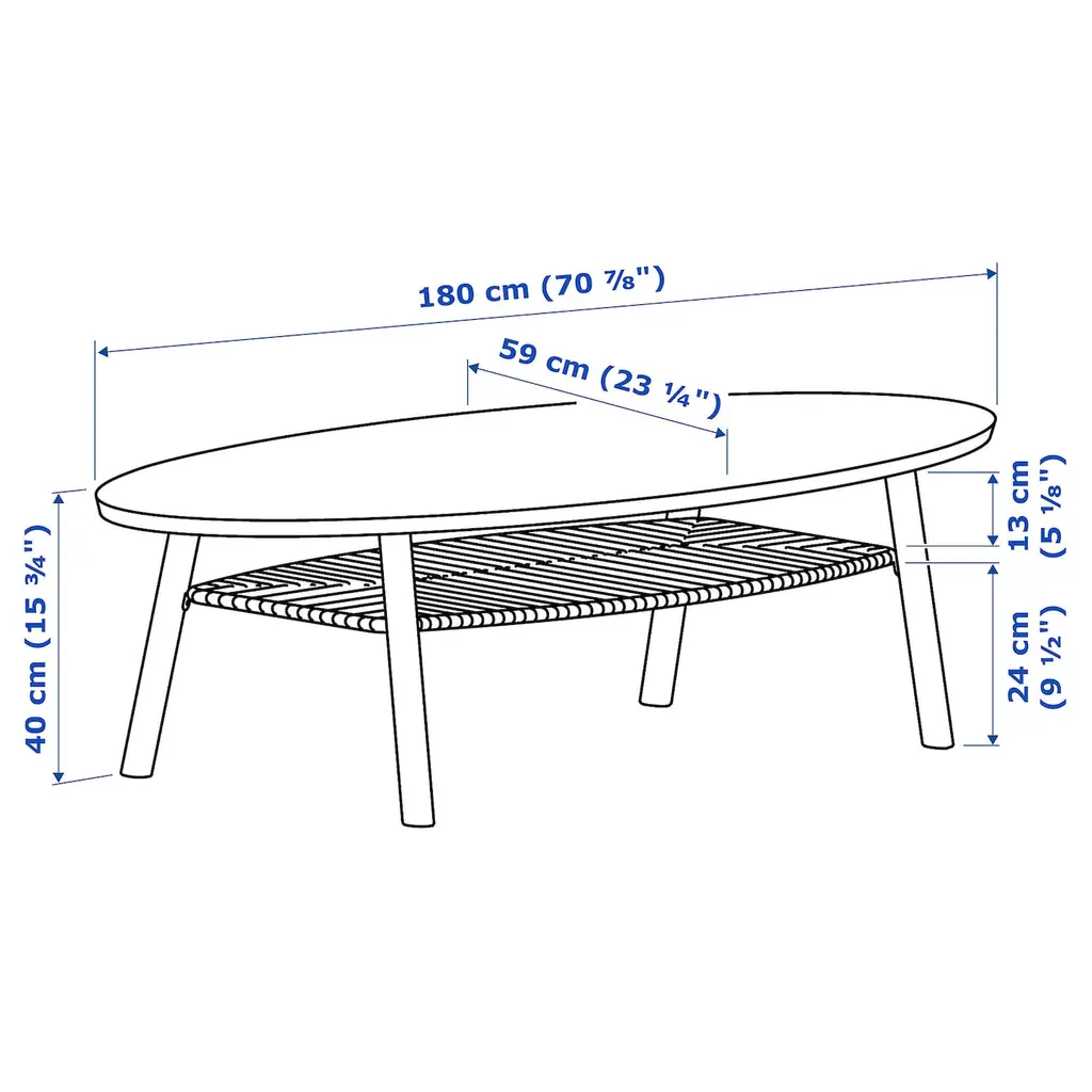 STOCKHOLM Coffee table - walnut veneer 70 7/8x23 1/4 ". The table surface in walnut veneer and legs in solid walnut give a warm, natural feeling to your room. The distinctive grain pattern in the walnut veneer gives each table a unique character. Max load on table top: 44 lbs.