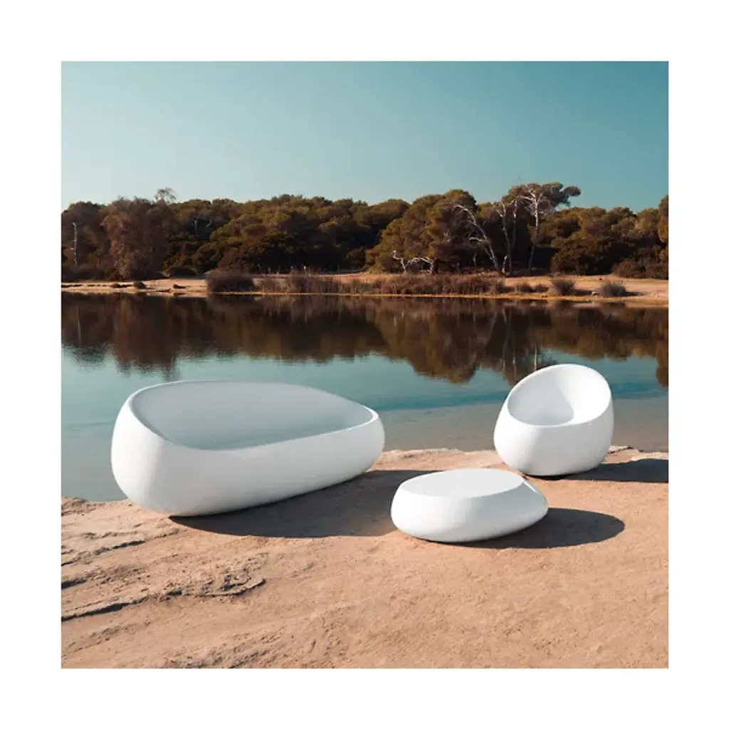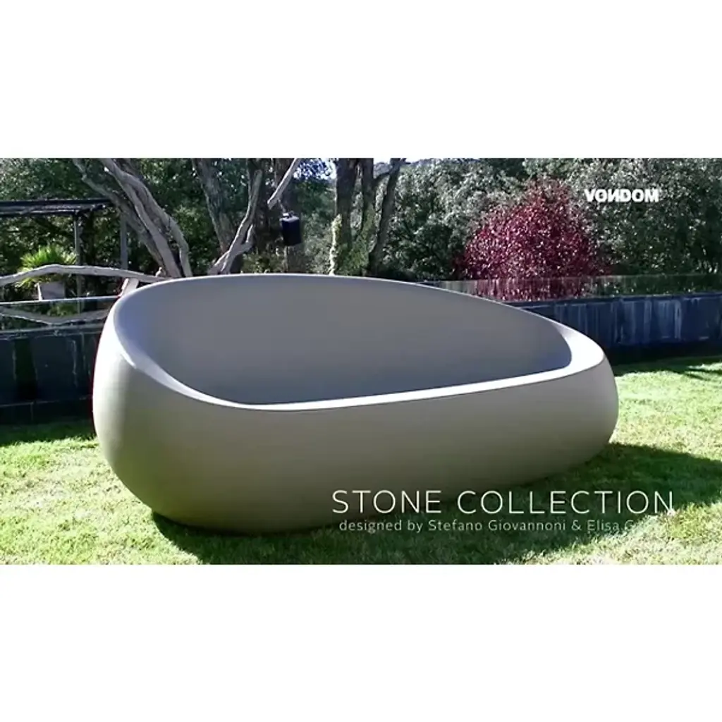 Designed by Stefano Giovannoni, 2010. Made in Spain by Vondom. Embodying the epitome of harmony between nature, man and space, the Stone Coffee Table channels the beauty of natural elements into the artificial landscape with its sleek, flat top surface. Durable and weatherproof, this coffee table's polyethylene composition allows furniture placement outside in the harsh elements. And because it's not as heavy as it looks, this cocktail table can be moved around with little effort. Create a relaxing oasis indoors or out with the Stone Table. Available in several vibrant colors and two finishes.
