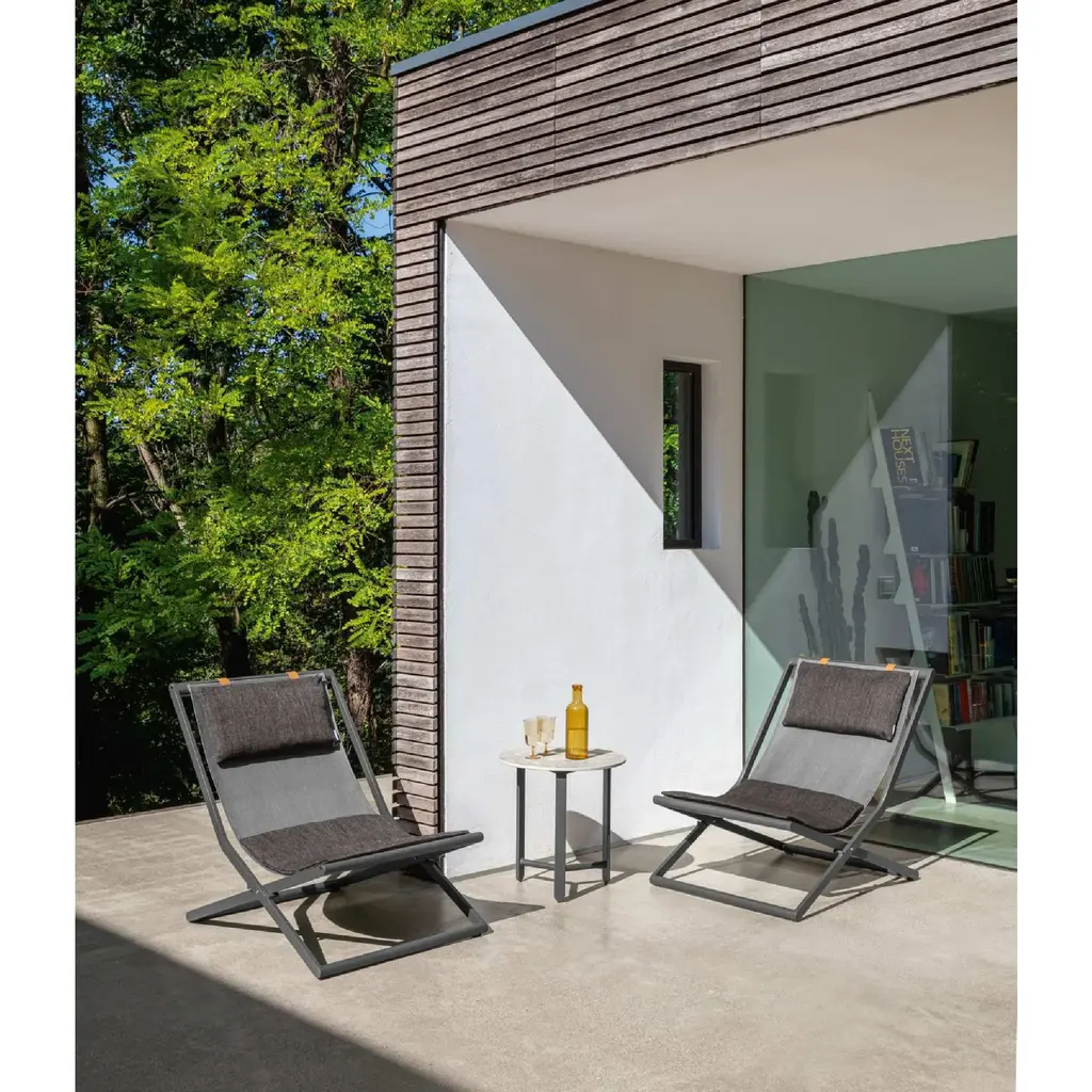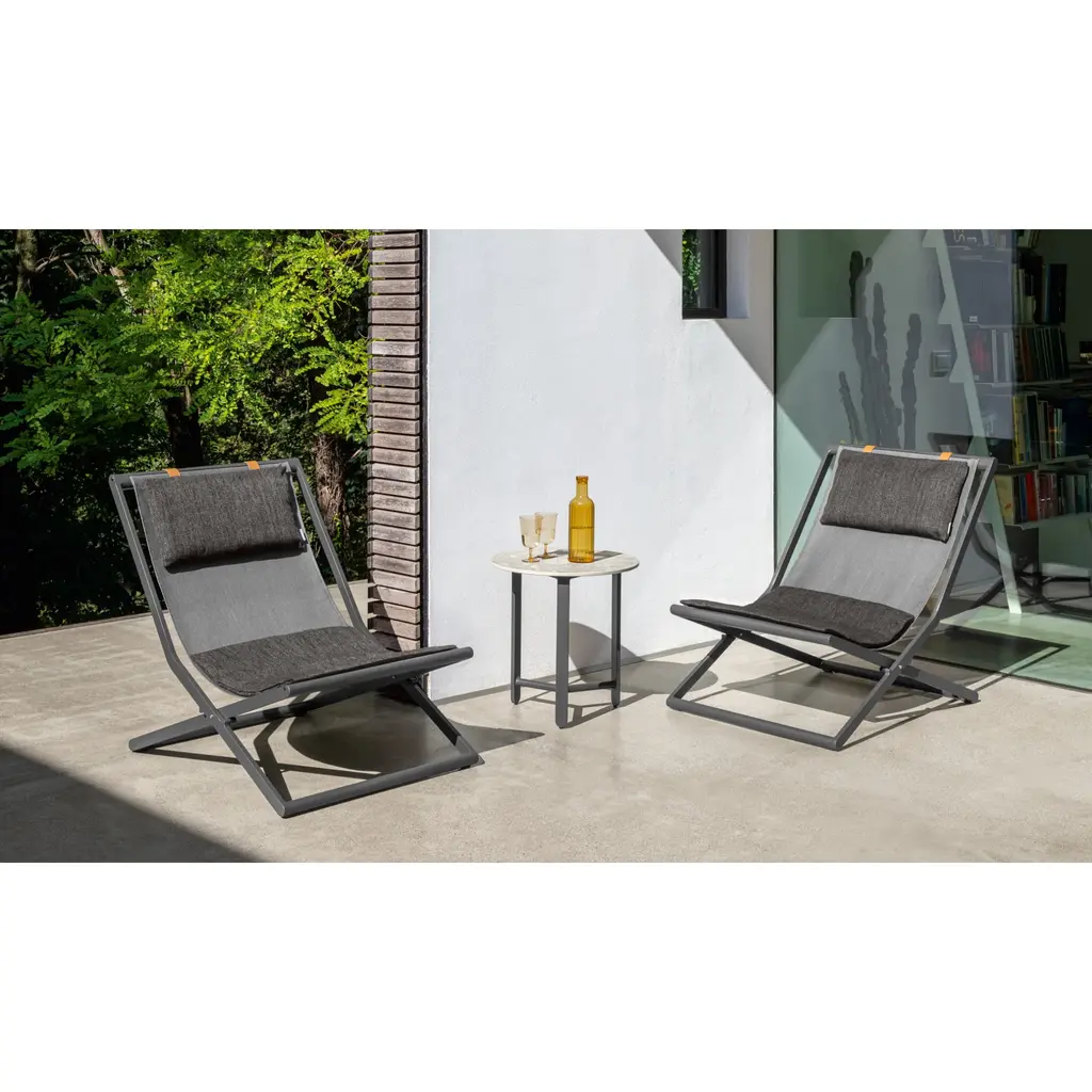 The round coffee table is the essential element to complete your outdoor furniture. With its elegant and minimal lines and thanks to the geometric design of the frame, it does not renounce to the sophisticated touch of the ceppo di gre, here used in the round top.