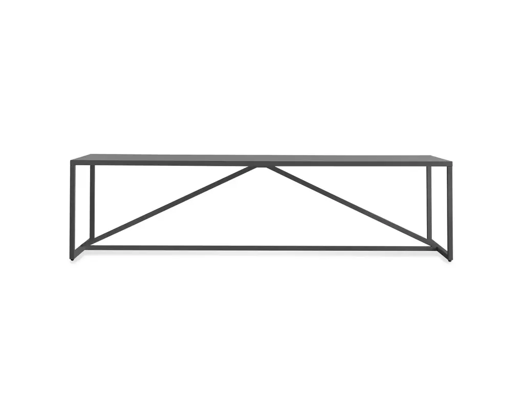 Structure and design are one with the Strut. A proud stance for any gathering. Powder-coated steel frame with a durable polyurethane finish over MDF for the top.