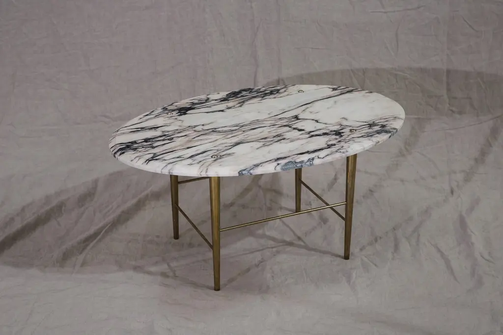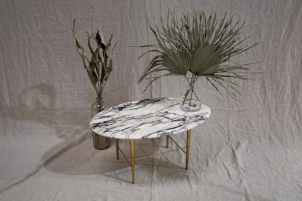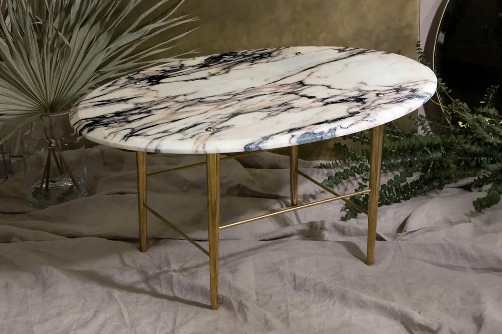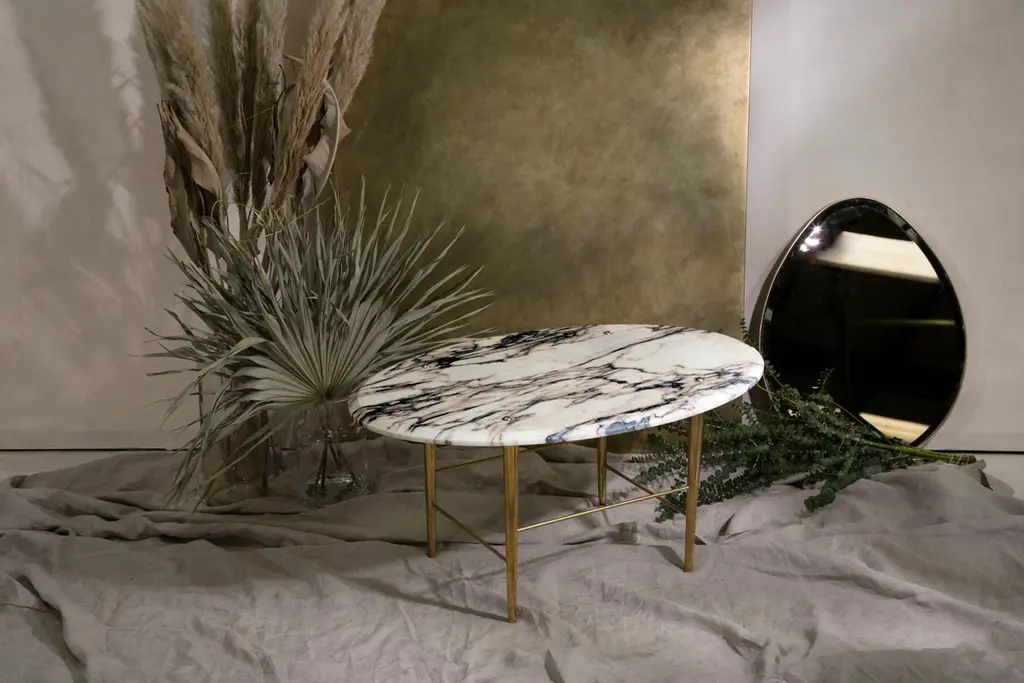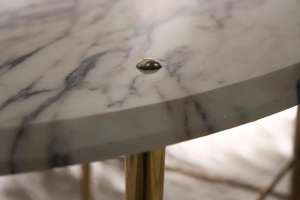 Stud Coffee Table In Vulcanatta Marble And Polished Brass — Small