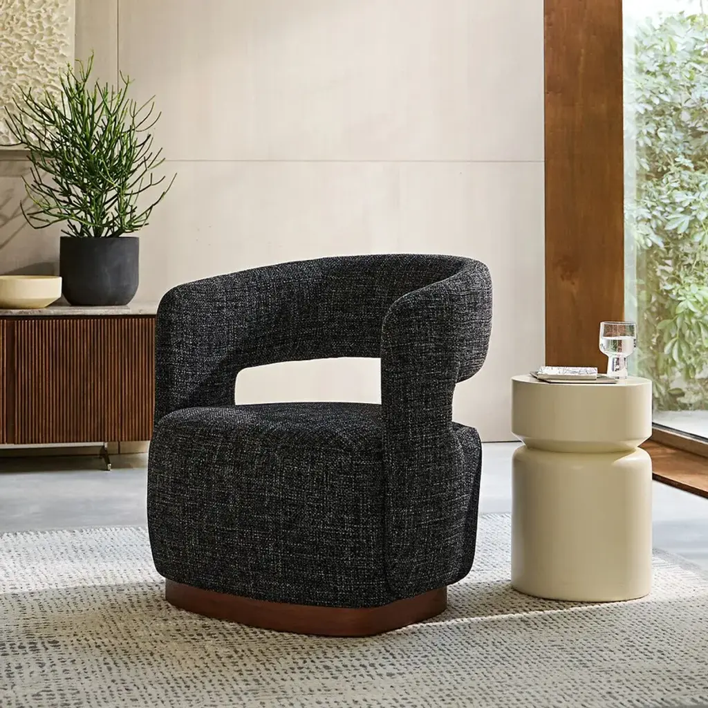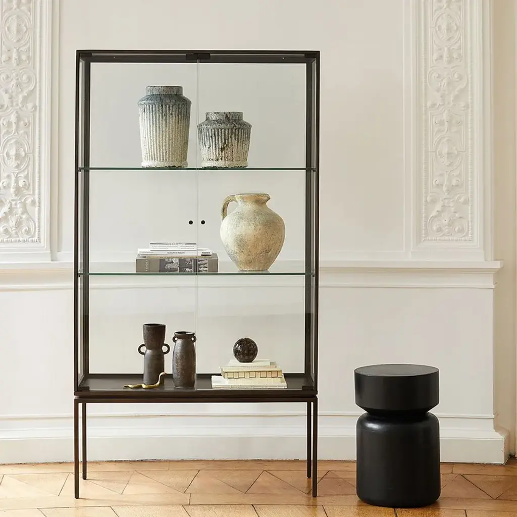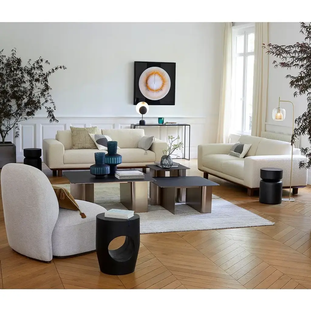 Sujua coffee table with graphic lines for use alone or in combination with the other models in the collection. Made of black stained mango.