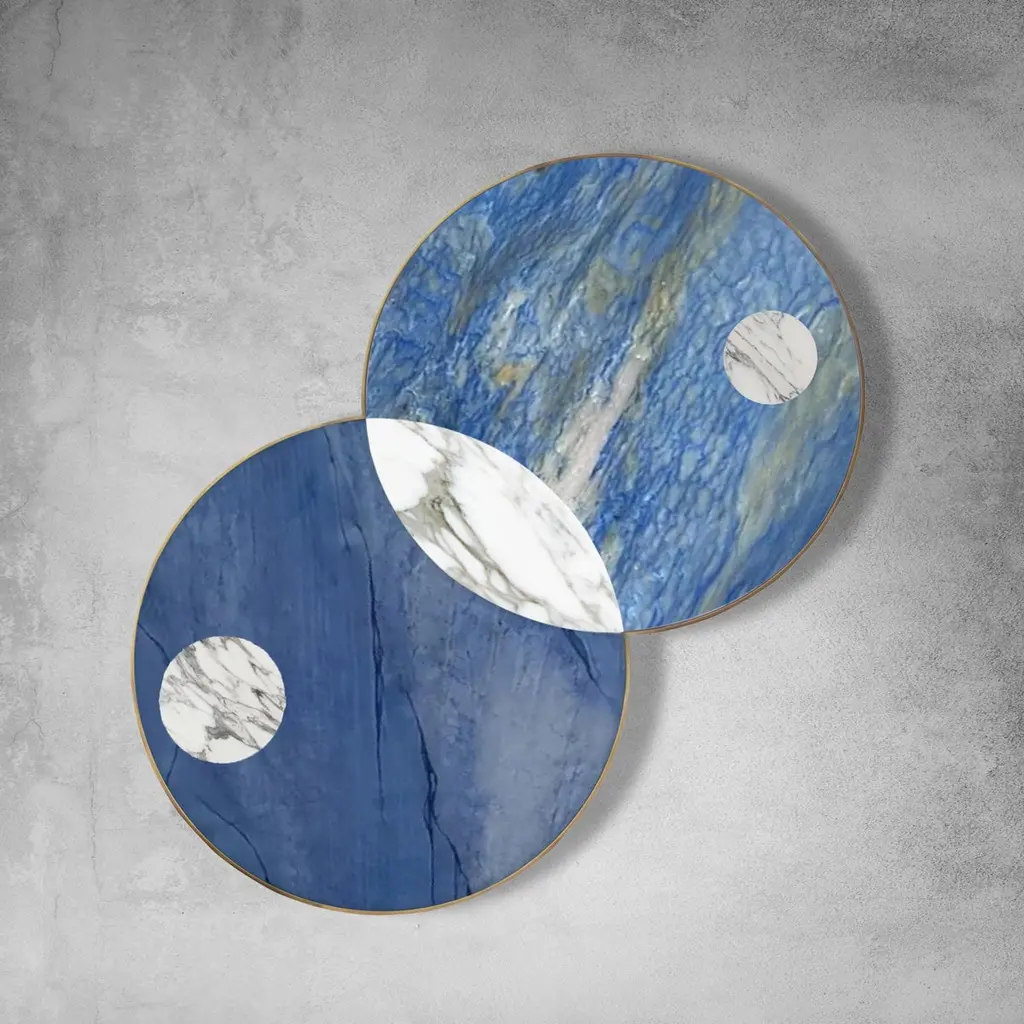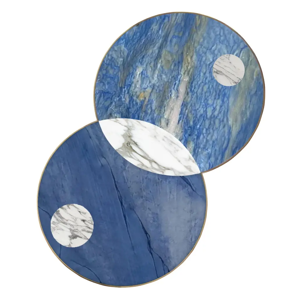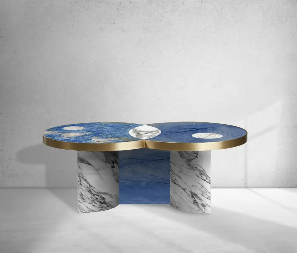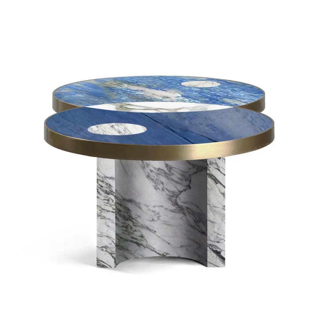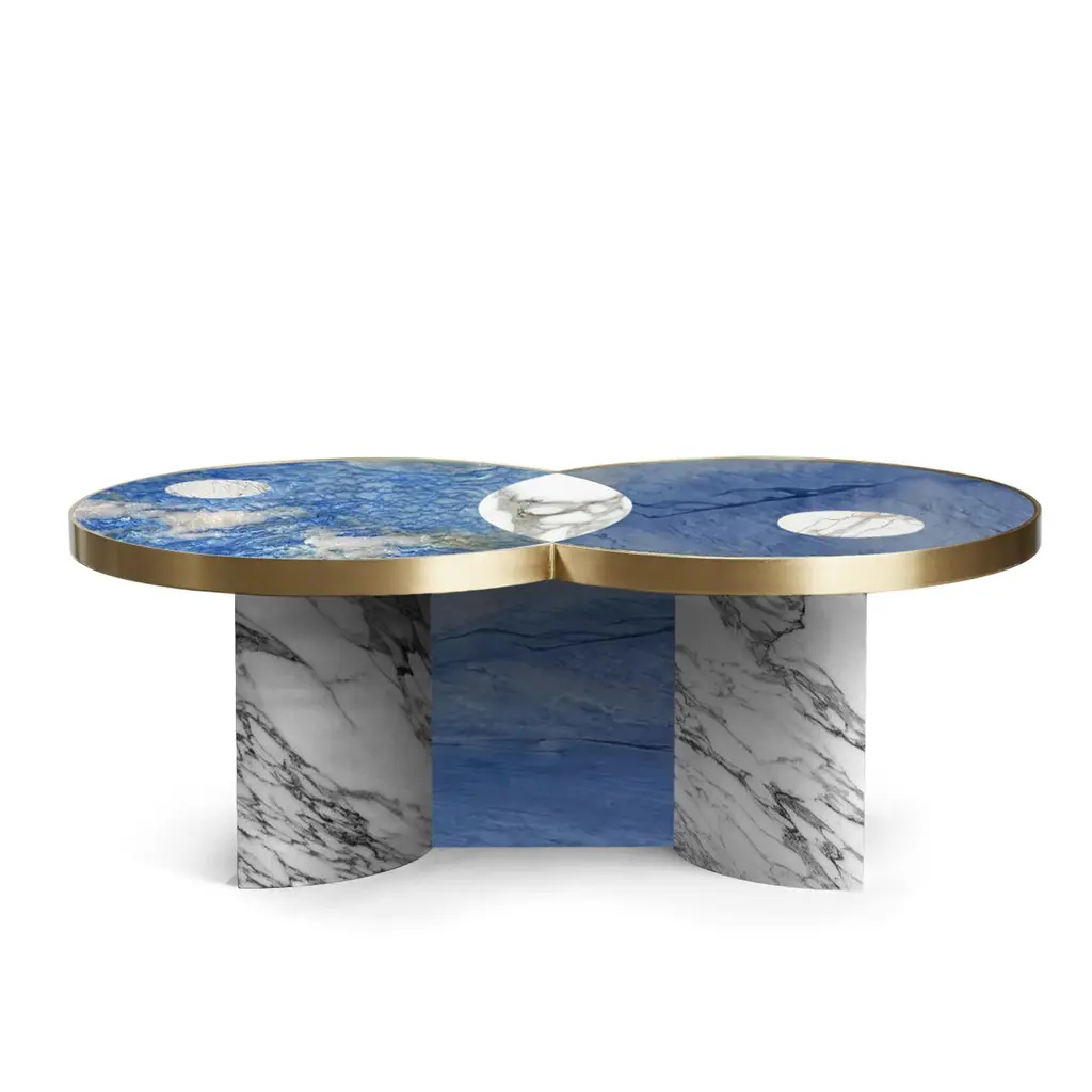 Sun And Moon Blue Marble And Brass Coffee Table Azul, By Lara Bohinc, Geometric