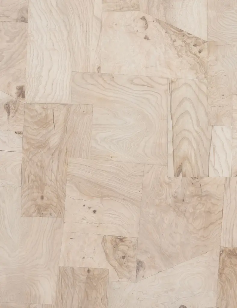 Freshen up the look of your living room with the patchwork tabletop design, rounded corners, and lighter walnut finish of this wood coffee table. Crafted from bleached ash burl, it features mahogany veneer sides and is finished with a sleek inset base. Pair this coffee table with desert hues or tailored neutrals.