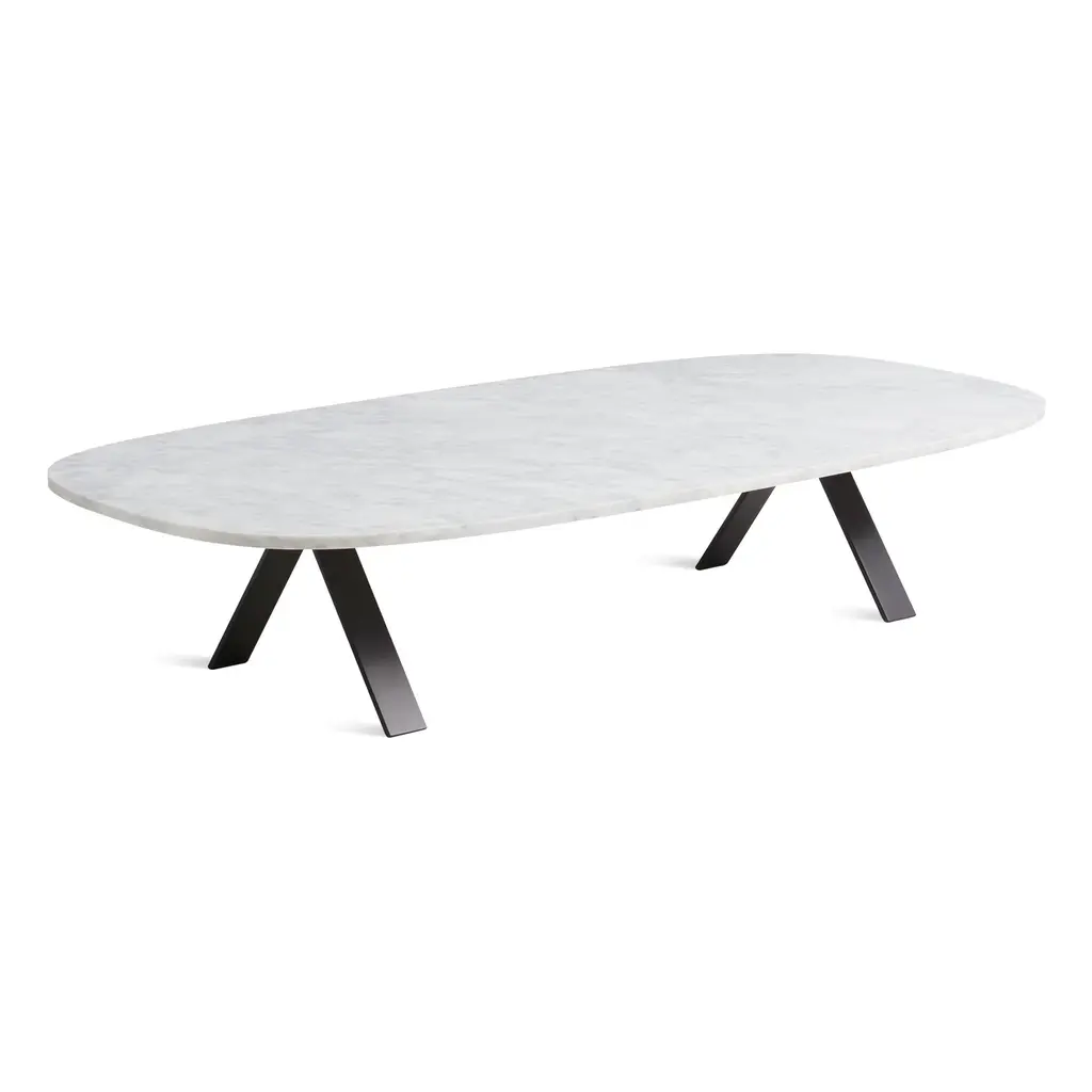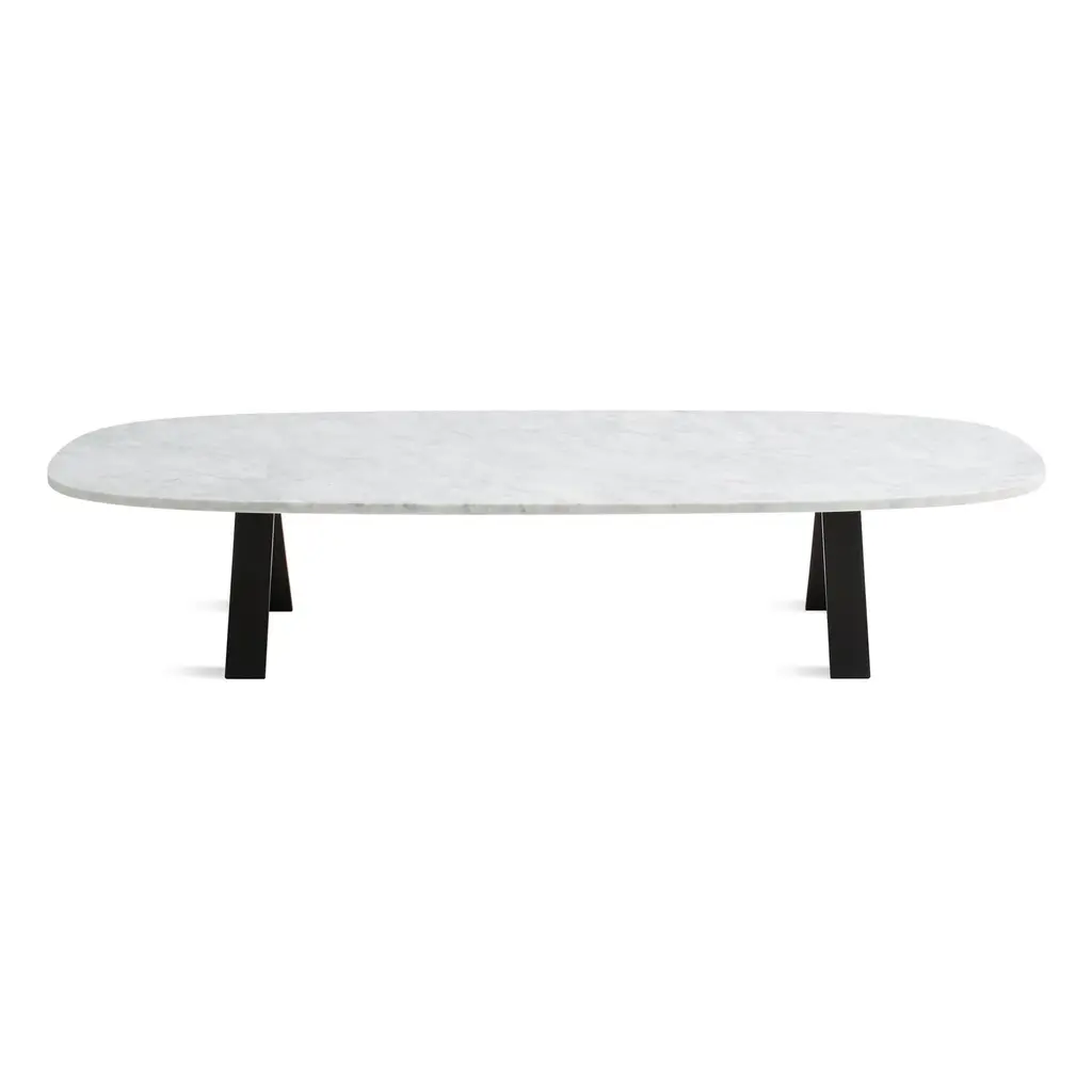 A generous mass of marble is served up with a discreet black powder-coated steel base to form a substantial and gorgeous coffee table. Perfect for pairing with sectionals or larger proportioned sofas, Super lives up to its name.