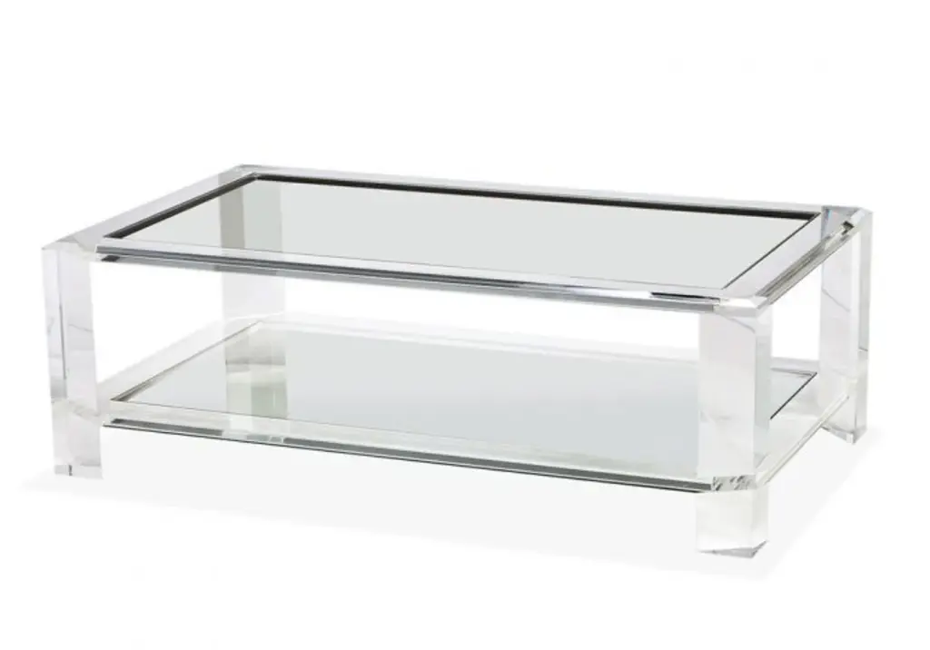 Introducing the Surrey Cocktail Table, designed to bring a contemporary touch to any living space. Its clear acrylic and glass construction is ideal for a modern aesthetic, as it allows for an open, airy feel.