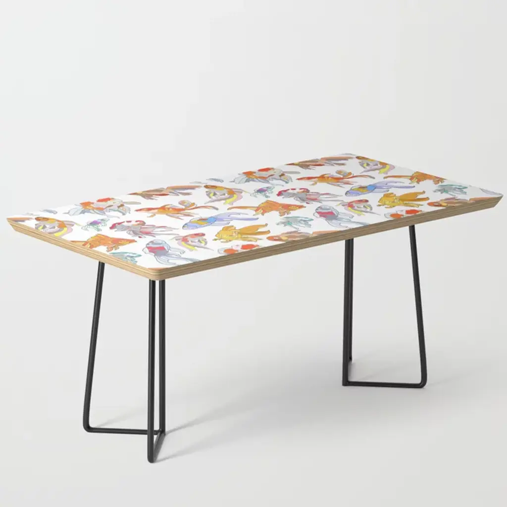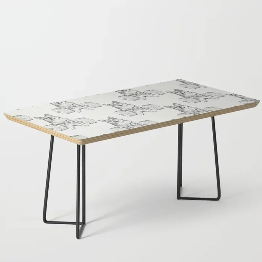 35.75" x 17.75" x 17" (H)Baltic birch table top with beveled edgeHigh quality print with satin finishSteel legs available in black or goldAssembly requiredEvery order is made just for youSHIPPING: Items are made to order and typically ship within 3-4 business days. Click here for more information about delivery options.Furniture sales are final. Click here for more information on returns.