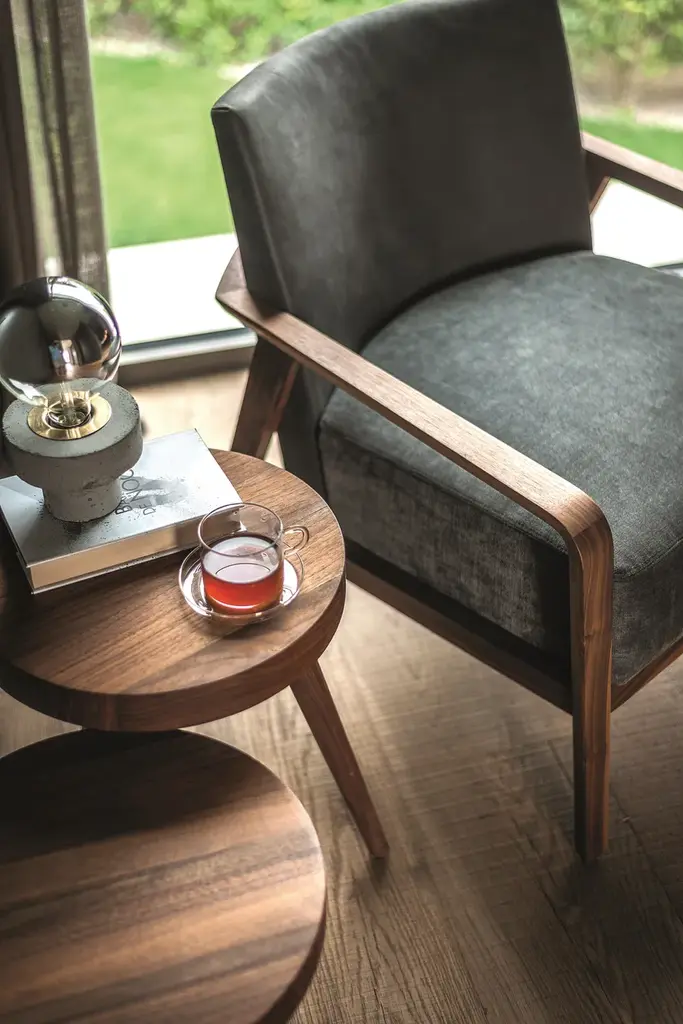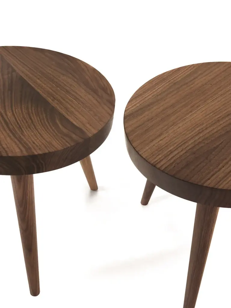 Susy is a round small table in solid wood characterized by a thick top and three legs.AVAILABLE FINISHES:A1: walnut without knotsA2: oak without knots, cherry