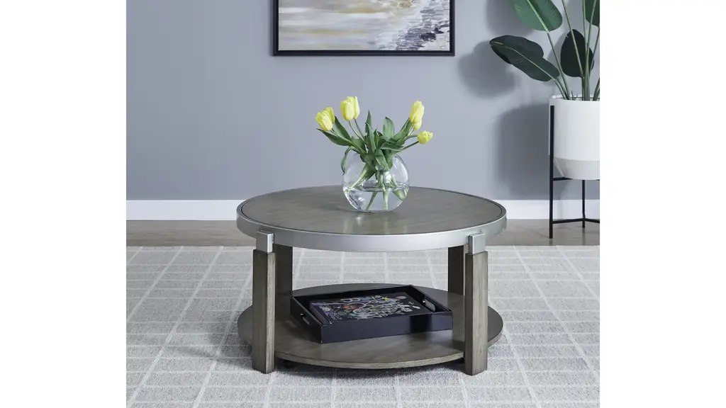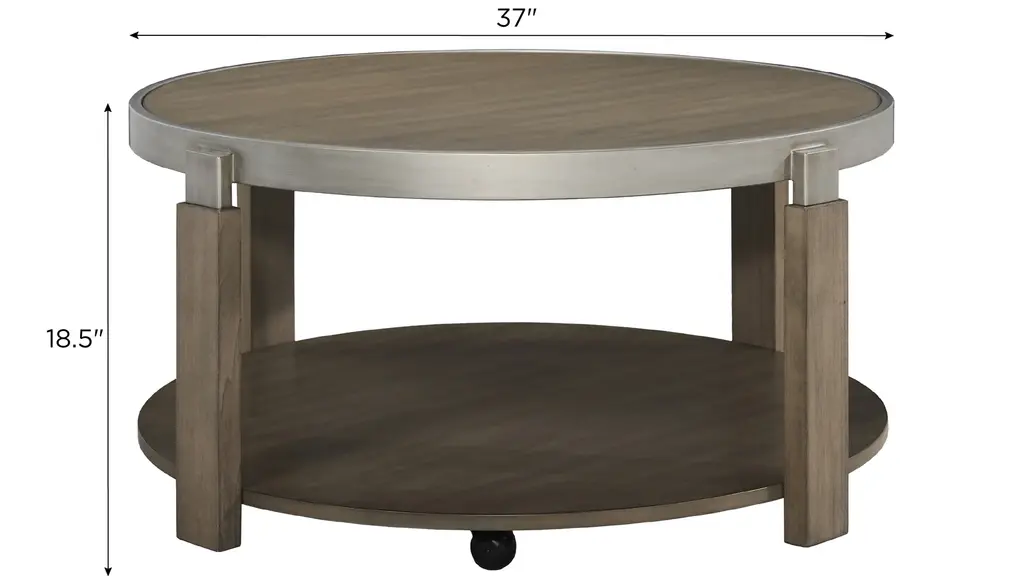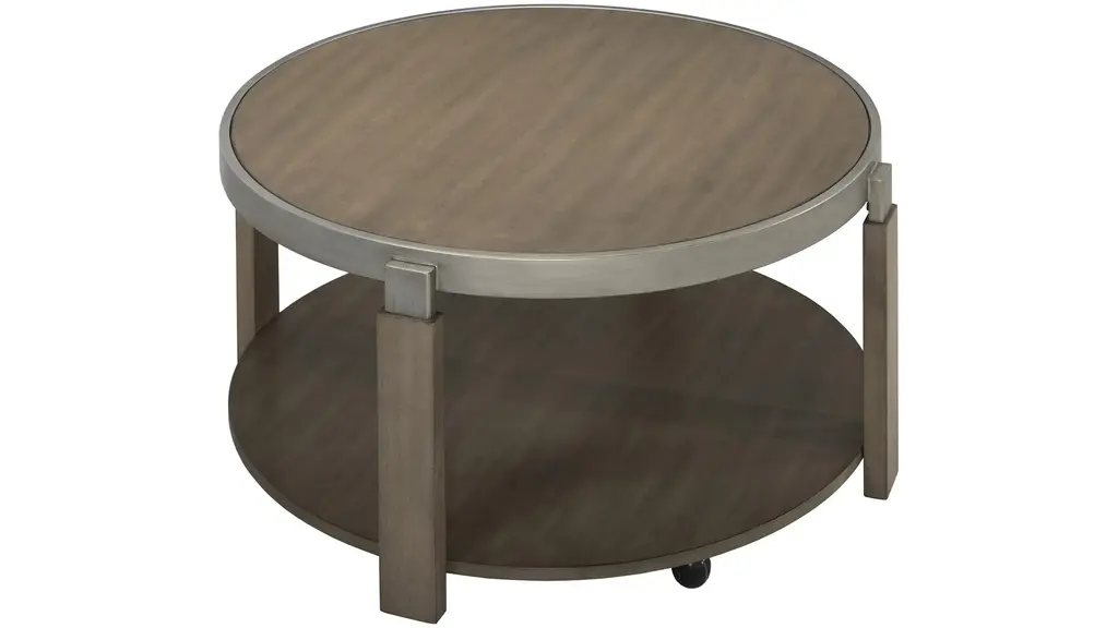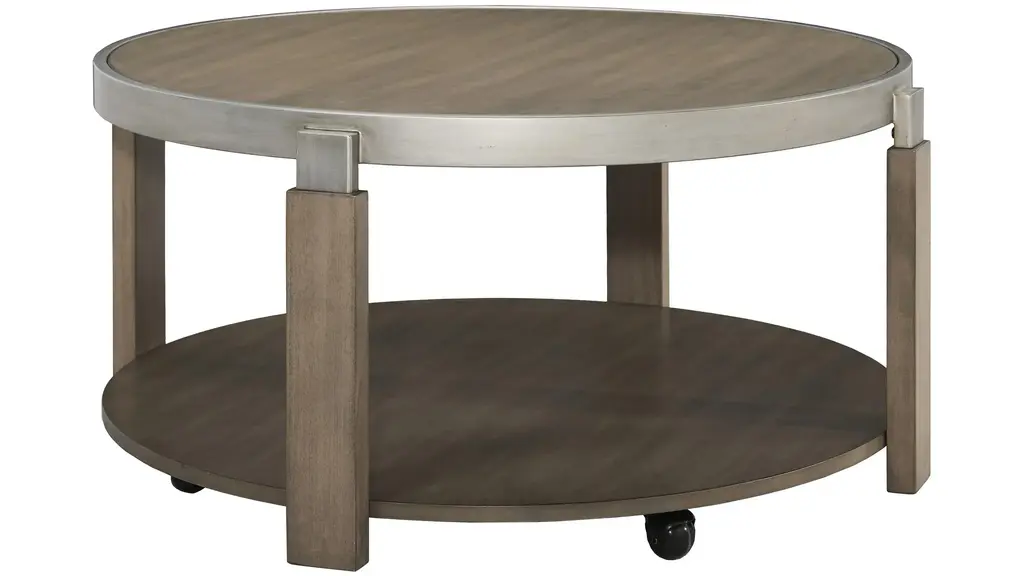 Complement a modern rustic, coastal or industrial vibe while adding polished functionality to your living space with the Sutton cocktail table with casters. The contrast of warm wood and lustrous metal creates striking visual appeal, while the round shape effortlessly enhances your home.