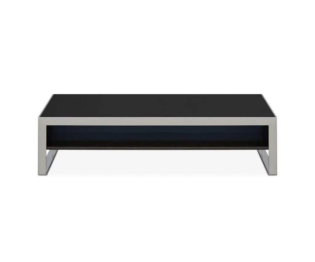 Form and function are cleverly incorporated into the appealing design of the Svante Coffee Table. Its simple beauty is achieved with a balance of wood and metal elements. The rectangular box is raised slightly and framed by the sleek lines of the stainless steel legs, providing ample storage or display space.