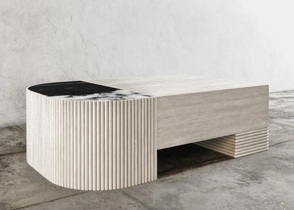Sway Coffee Table - Modern Design With Sandy Oak + Nero Marquina Marble